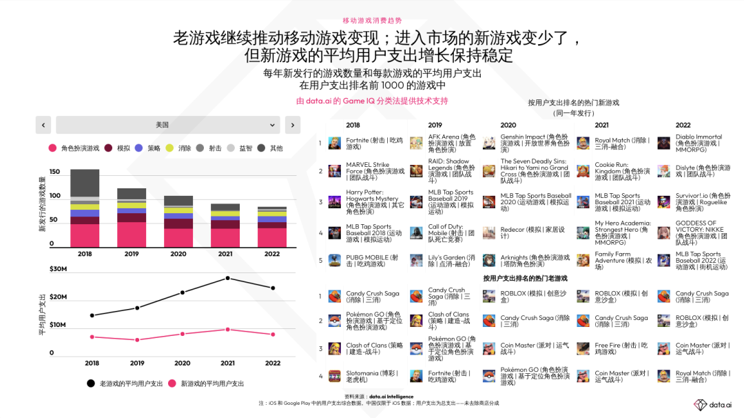 更重要的是,在用户支出方面,这些老游戏也一直优于新游戏。