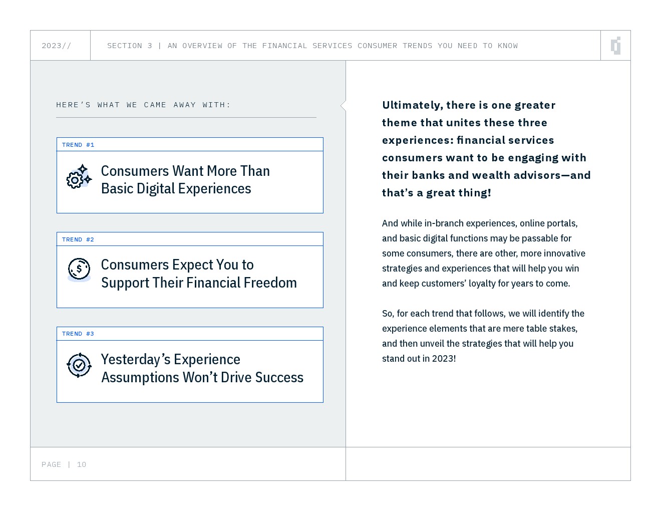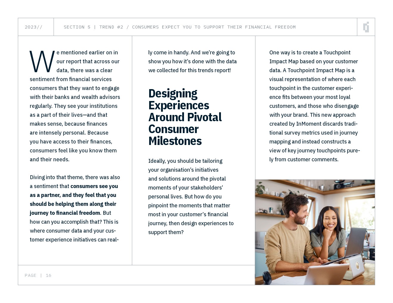 深入探讨该主题,还有一种情绪是消费者将金融服务视为合作伙伴,他们认为服务应该帮助他们实现财务自由。怎么能做到呢? 这就是消费者数据和客户体验计划真正派上用场的地方。