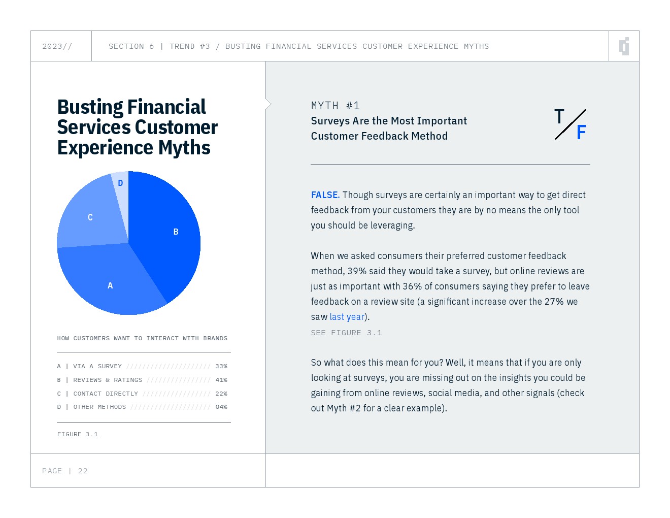 当询问消费者他们喜欢的客户反馈方式时,39% 的人表示他们会进行调查;但在线评论同样重要,36% 的消费者表示他们更愿意在评论网站上留下反馈,比此前调查的 27% 有显著增长。