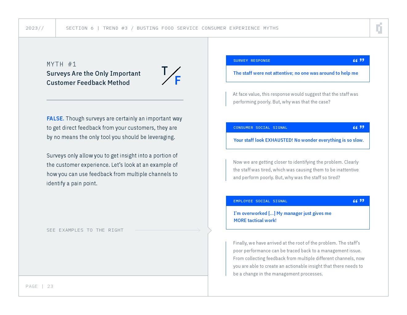 看看我们目前的见解,可以肯定地说,消费者根本不会满足于相同的旧式餐厅体验。事实上,送货或取货选项等功能也不足以吸引他们的注意力。调查还推翻了一些传统观念,例如“调查是唯一重要的客户反馈方法”、“单靠调查就能测量客户的旅程”。