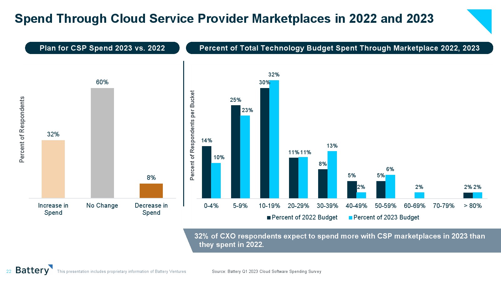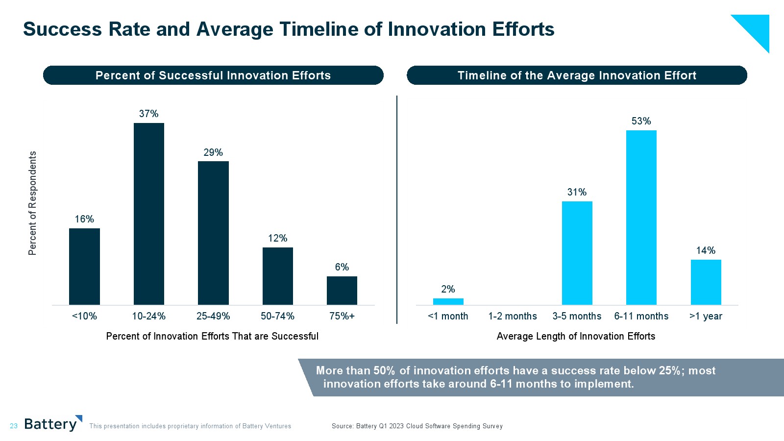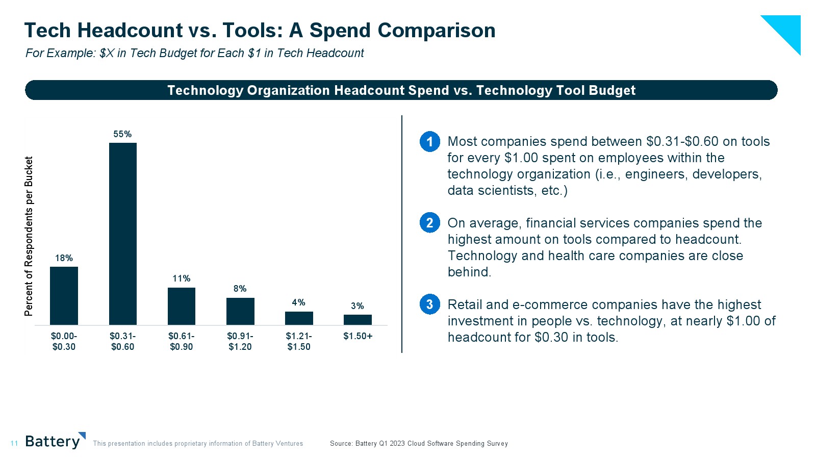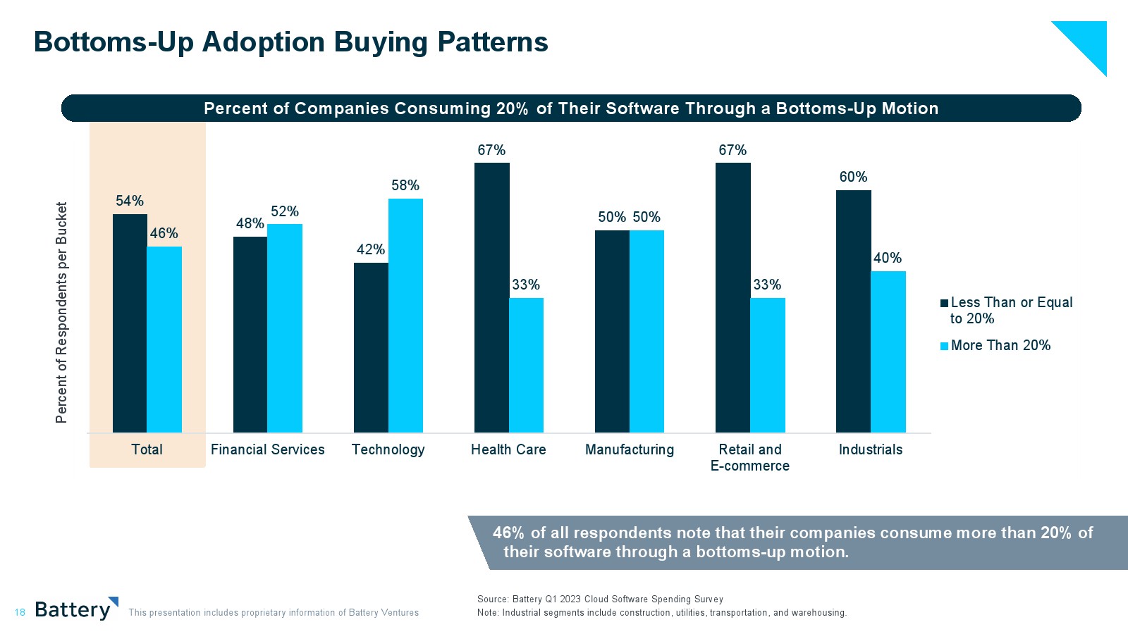 Battery的“企业技术支出情绪指数”基于预算、支出趋势、预算前景和批准时间。在这项 2023 年第一季度的调查中,该指数在 100 分制中得分为 50.2,其中“得分超过 50 表明买家行为看涨,企业买家仍然活跃并推动新技术的采用。”