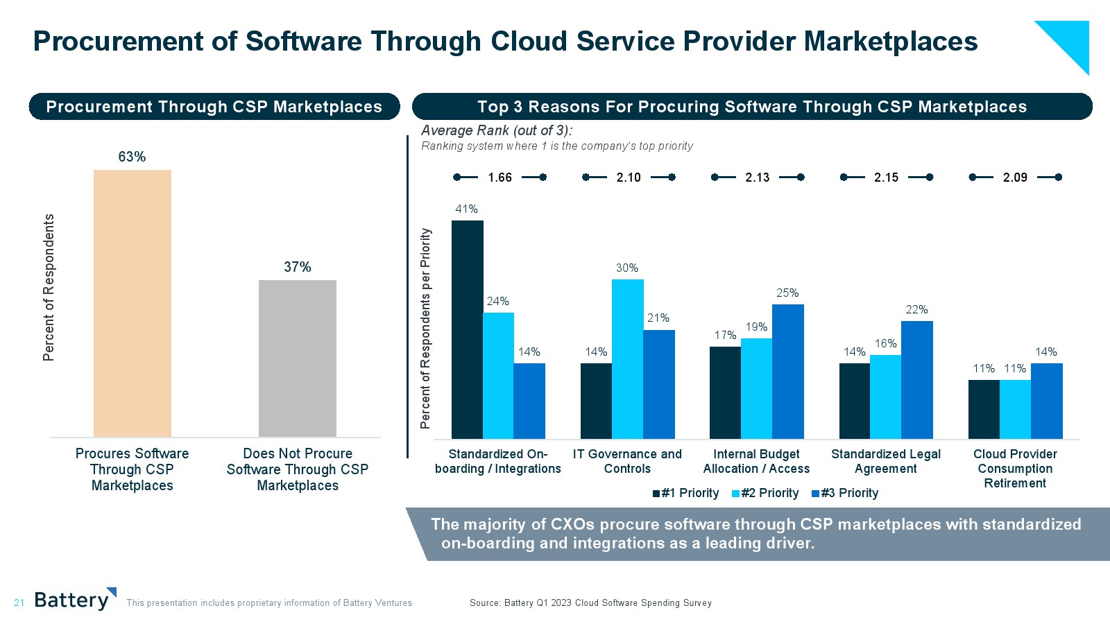 该报告还指出,几乎所有企业技术买家的企业合同批准时间已经放缓 (32%) 或保持不变 (64%)。大约 36% 的受访者从处于早期阶段的公司采购,而 64% 的受访者不会这样做;近一半的受访者 (46%) 通过自下而上的议案使用超过1/5的软件购买。