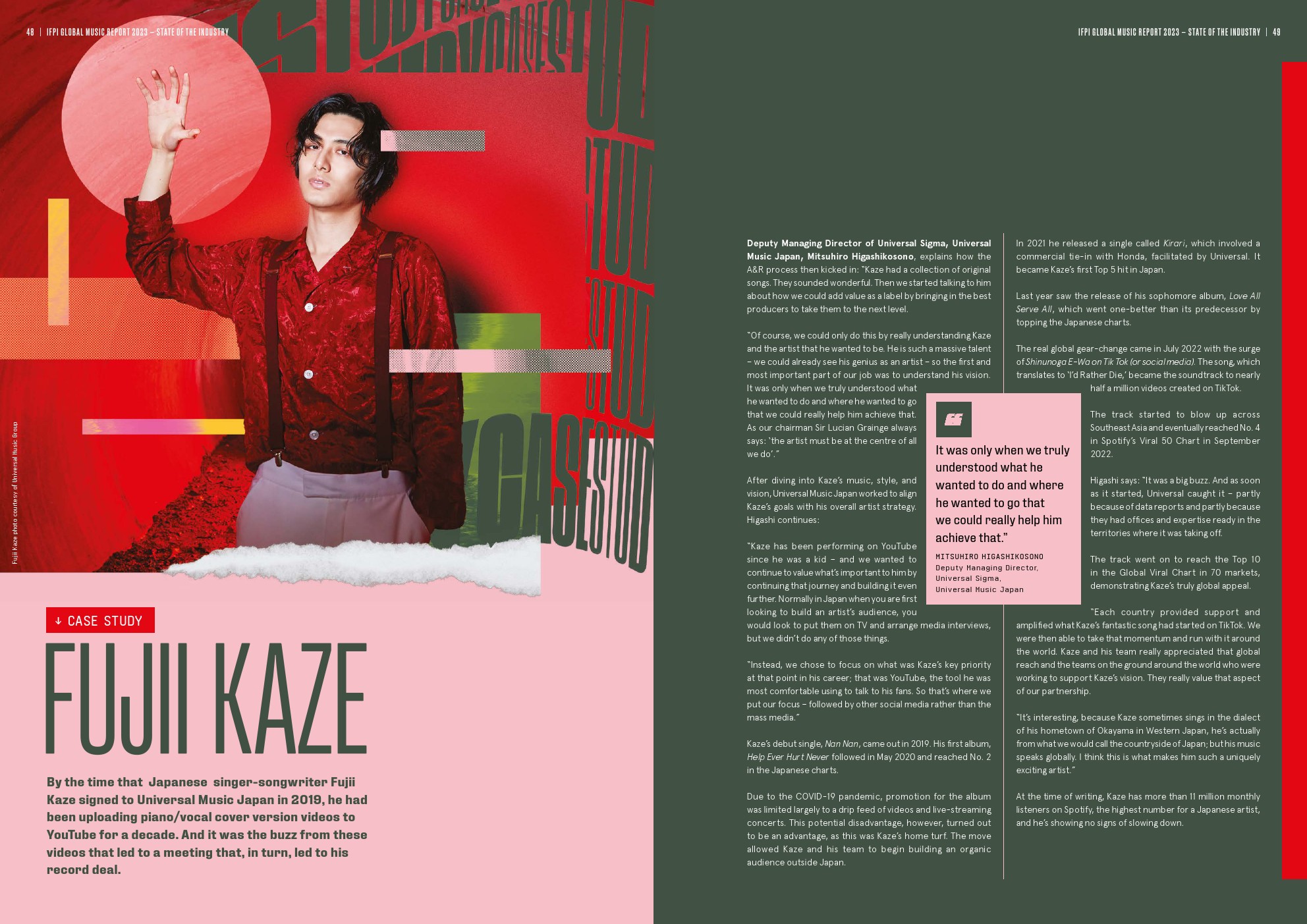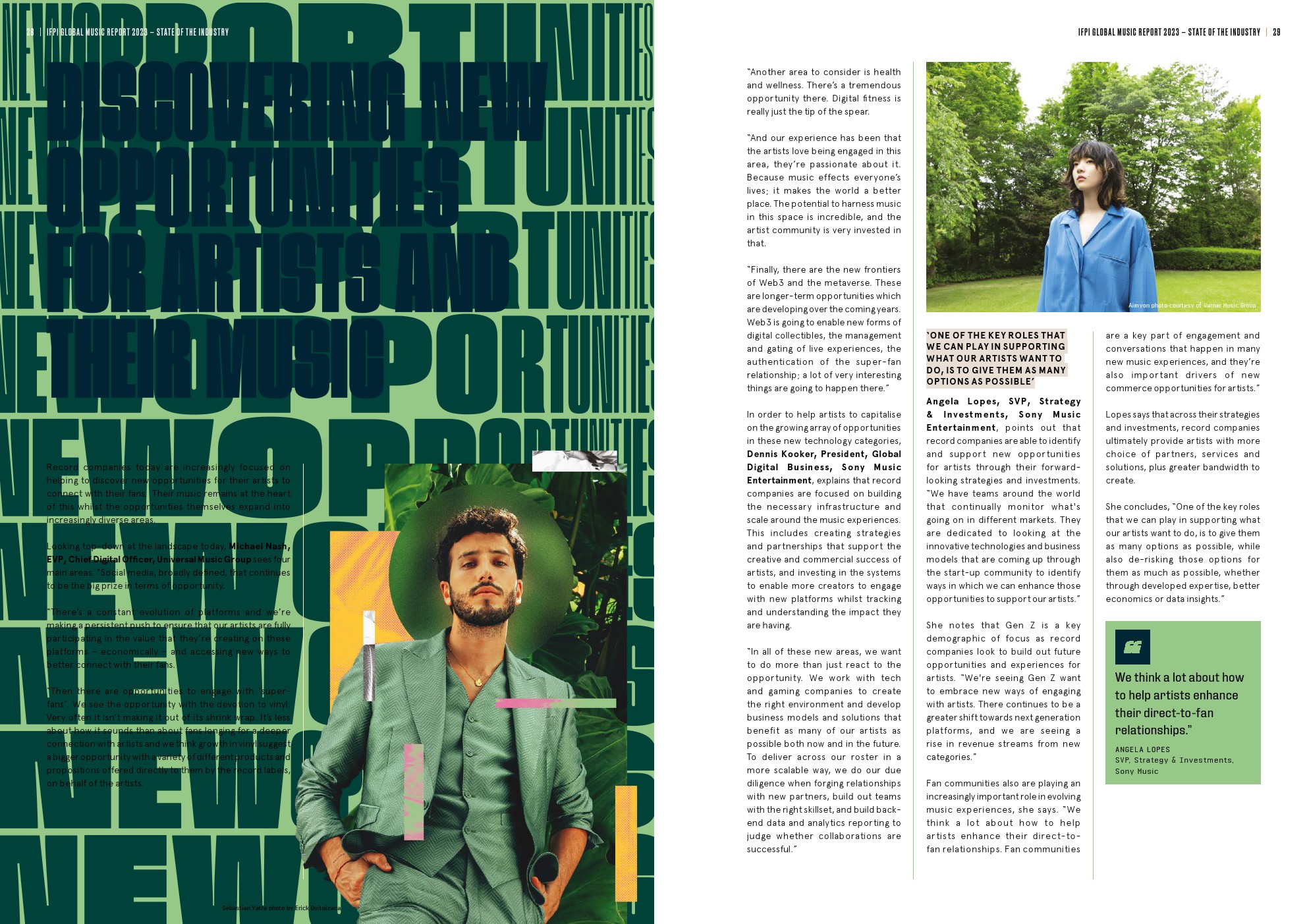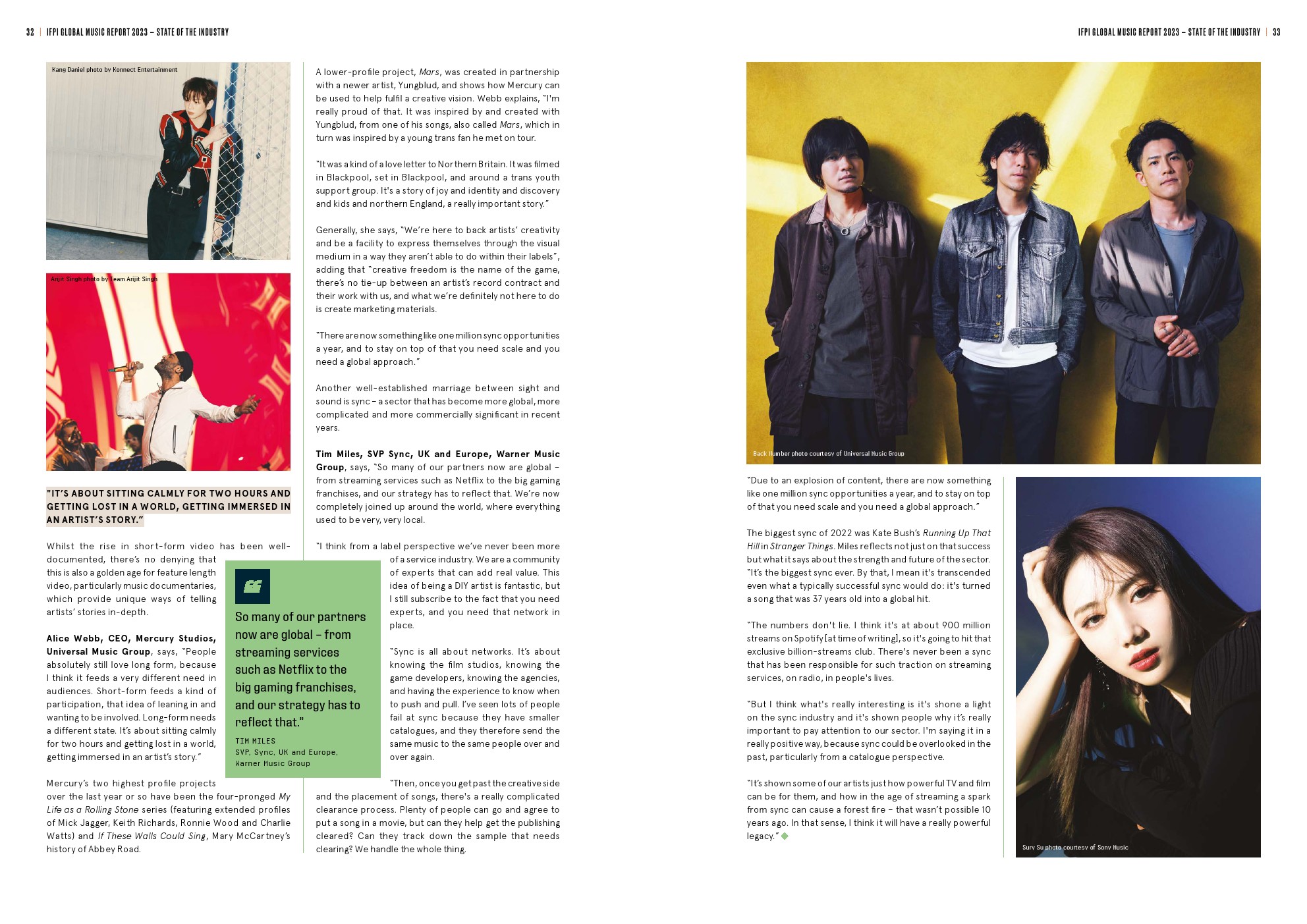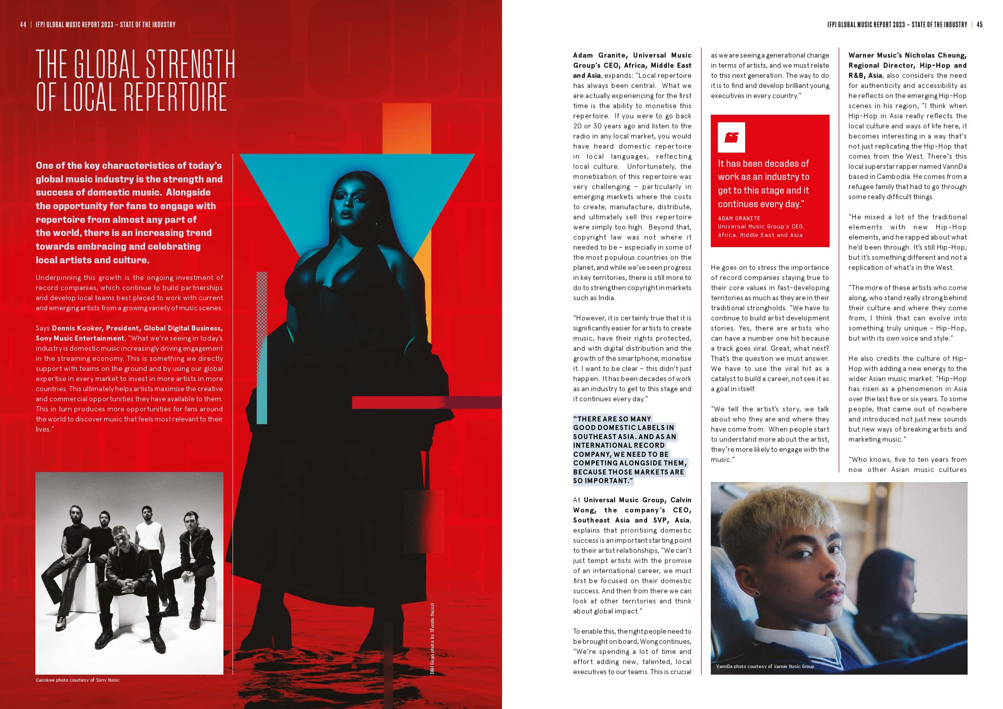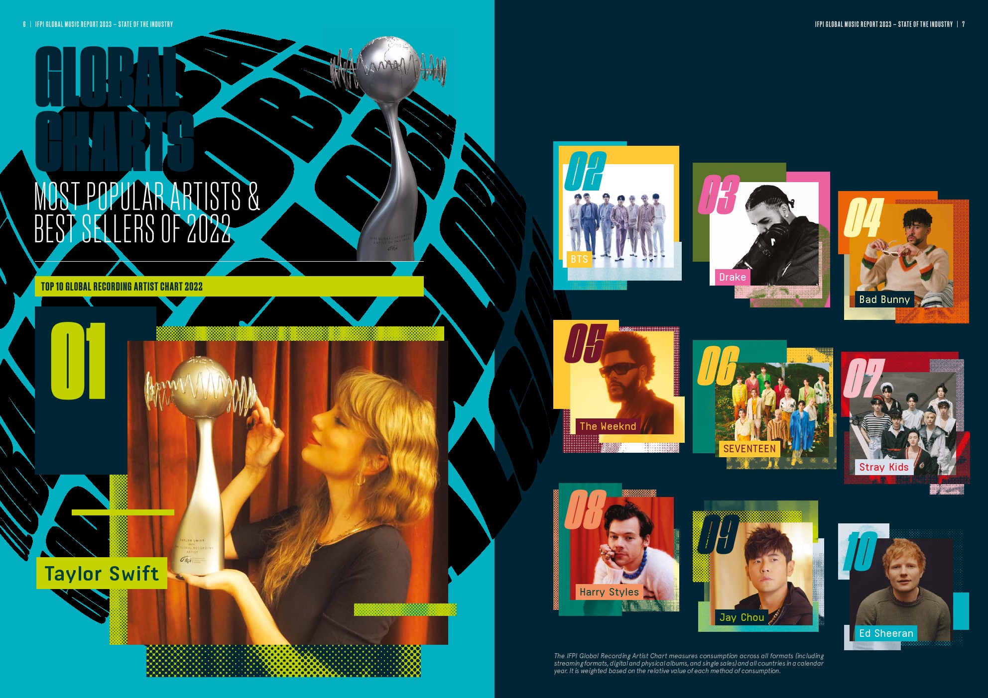 - 亚洲增长15.4%,其中最大的市场日本增长5.4%;第二大市场中国增长28.4%,首次成为全球前五大音乐市场。亚洲占全球实体音乐收入的近一半(49.8%)。