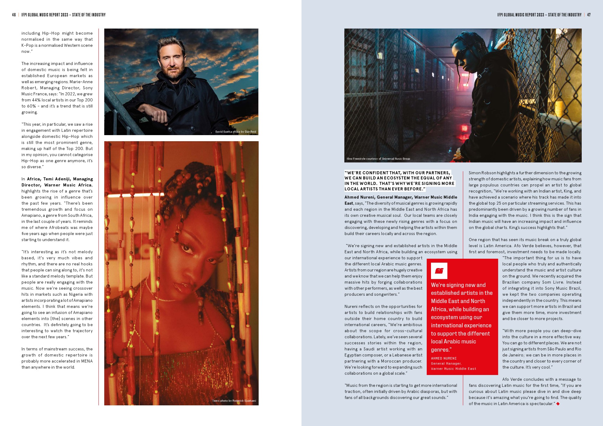 - 中东和北非——此前是2021年增长最快的市场,中东和北非地区2022年音乐收入增长率排名第三,增长23.8%,占全球所有地区流媒体的份额最高(95.5%)。