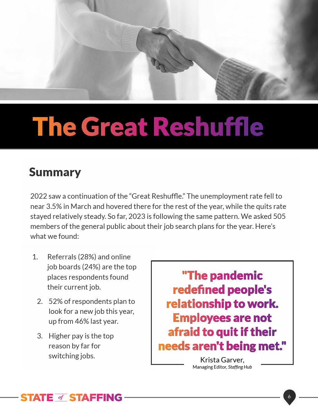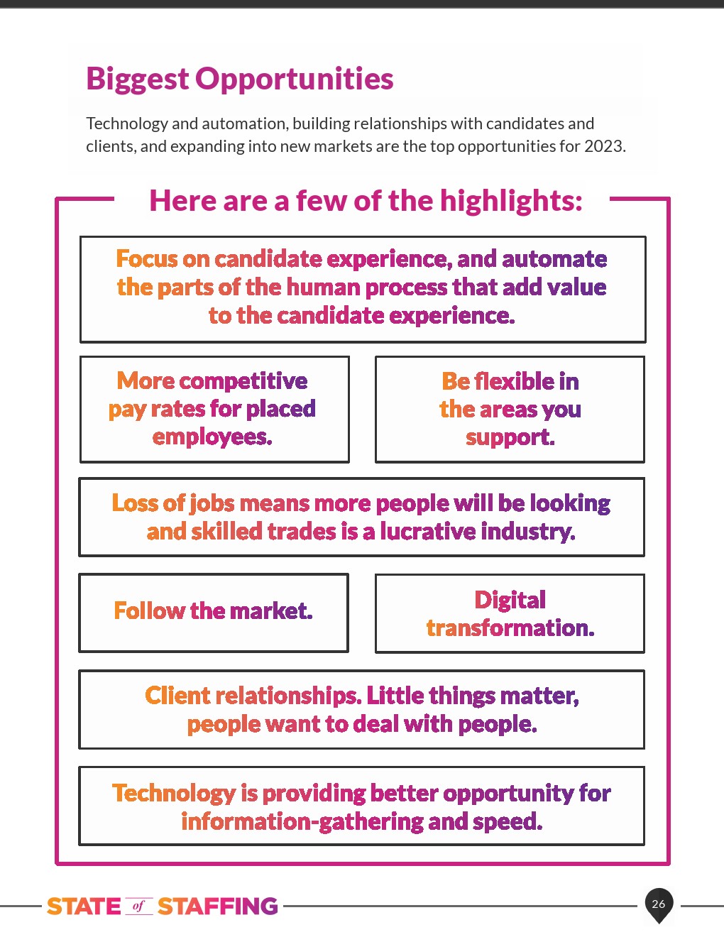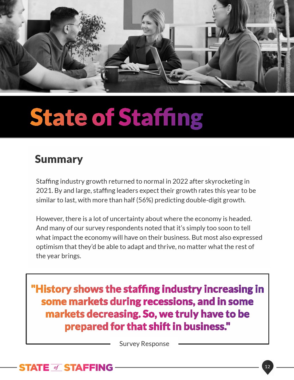 这份报告包含了来自400多名人力资源专业人士对行业顶级挑战和机遇的见解。Staffing Hub希望它对专业人士决策有一定的价值。