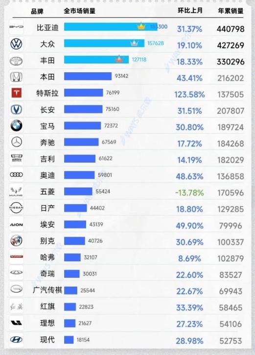 如果从今年比亚迪全力实现300万辆规模来看,比亚迪今年有望超越大众,在单品牌层面,逆袭大众一家独大的局面。