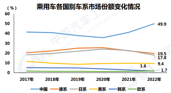 中汽协数据显示,从2017年到2022年,德系品牌一直保持着超越日系的市场占有率,德系品牌中主要以大众为支撑,也就是说,大众在中国的市场表现仍然相对稳定。