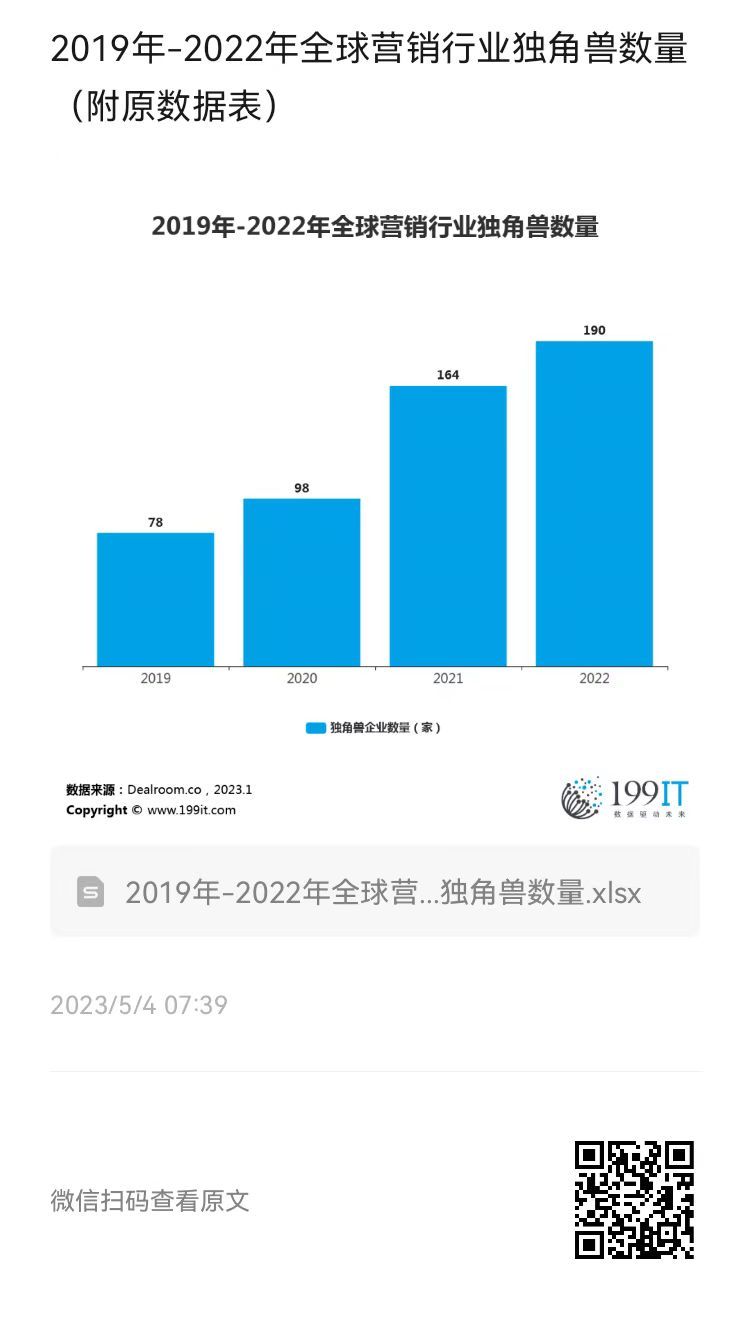 2019年-2022年全球营销行业独角兽数量(附原数据表) ​​​