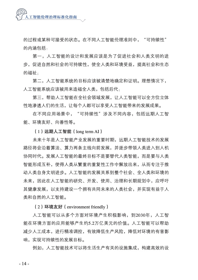 《人工智能伦理治理标准化指南》共分为六章,以人工智能伦理治理标准体系的建立和具体标准研制为目标,重点围绕人工智能伦理概念和范畴、人工智能伦理风险评估、人工智能伦理治理技术和工具、人工智能伦理治理标准体系建设、重点标准研制清单,以及展望与建议等6个方面展开研究,力争为落实人工智能伦理治理标准化工作奠定坚实基础。