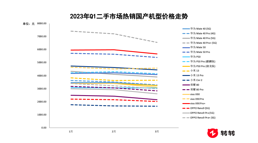 对此,转转集团数据部的分析师表示,一季度内多款中高端旗舰机型上市,加速了二手高端手机价格的下跌。
