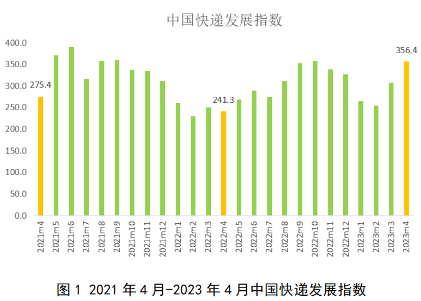 近日消息,国家邮政局发布 4 月中国快递发展指数报告,4 月中国快递发展指数为 356.4,同比提升 47.7%。其中发展规模指数、发展能力指数和发展趋势指数分别为 387、213.6 和 77.5,分别同比提升 35.1%、25% 和 18.1%,服务质量指数为 561.7,同比提升 72.8%。