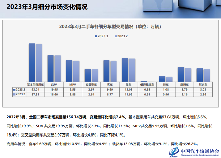 中国汽车流通协会:2023年3月全国二手车市场深度分析 更多阅读:中国汽车流通协会:2021年全国二手车市场深度分析中国汽车流通协会:2025年5月全国二手车市场深度分析中国汽车流通协会:2020年10月二手车市场深度分析中国汽车流通协会: 2023年9月全国二手车市场深度分析中国汽车流通协会:2020年11月二手车市场深度分析中国汽车流通协会:2020年6月全国二手车市场深度分析中国汽车流通协会:2021年8月全国二手车市场深度分析中国汽车流通协会:2022年8月全国二手车市场深度分析中国汽车流通协会:2022年8月全国二手车市场深度分析中国汽车流通协会:2022年1月全国二手车市场深度分析中国汽车流通协会:2023年1月全国二手车市场深度分析中国汽车流通协会:2022年7月全国二手车市场深度分析中国汽车流通协会:2023年2月全国二手车市场深度分析中国汽车流通协会:2022年2月全国二手车市场深度分析中国汽车流通协会:2021年10月全国二手车市场深度分析