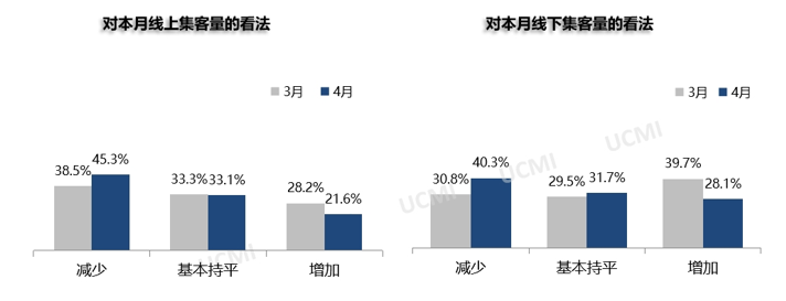 调查显示,4月份线上集客量与线下集客量有所减少。其中认为线上集客量“减少”的二手车经理人比例为45.3%;认为线下集客量“减少”的二手车经理人比例为40.3%。