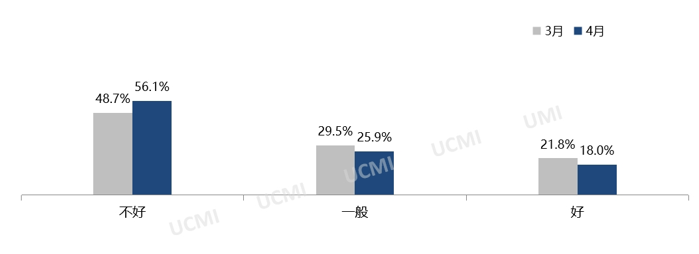 调查显示,二手车经理人认为2023年4月份的经营状况不好,认为经营状况“不好”的二手车经理人比例为56.1%。