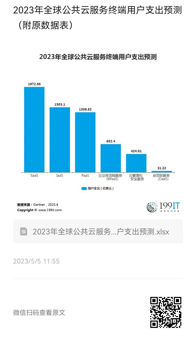 - 2023年全球公共云服务终端用户支出(附原数据表)