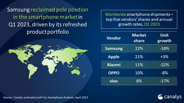 不论是从Counterpoint的数据还是从Canalys的数据来看,在三星苹果之后,小米、OPPO、vivo的份额无疑是排在前五的,虽然出货均有下降,但是依旧有着不可撼动的实力。在第一季度,他们的表现又如何呢?