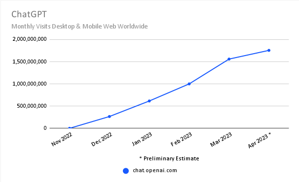 OpenAI 开发的人工智能聊天机器人 ChatGPT 在 2022 年 11 月底上线后,迅速引爆了全球的关注,仅仅几个月,chat.openai.com 就获得了超过 17 亿次的访问量,超过了必应、纽约时报和 CNN 等知名网站的流量,甚至有人将其称为“第二个谷歌”。