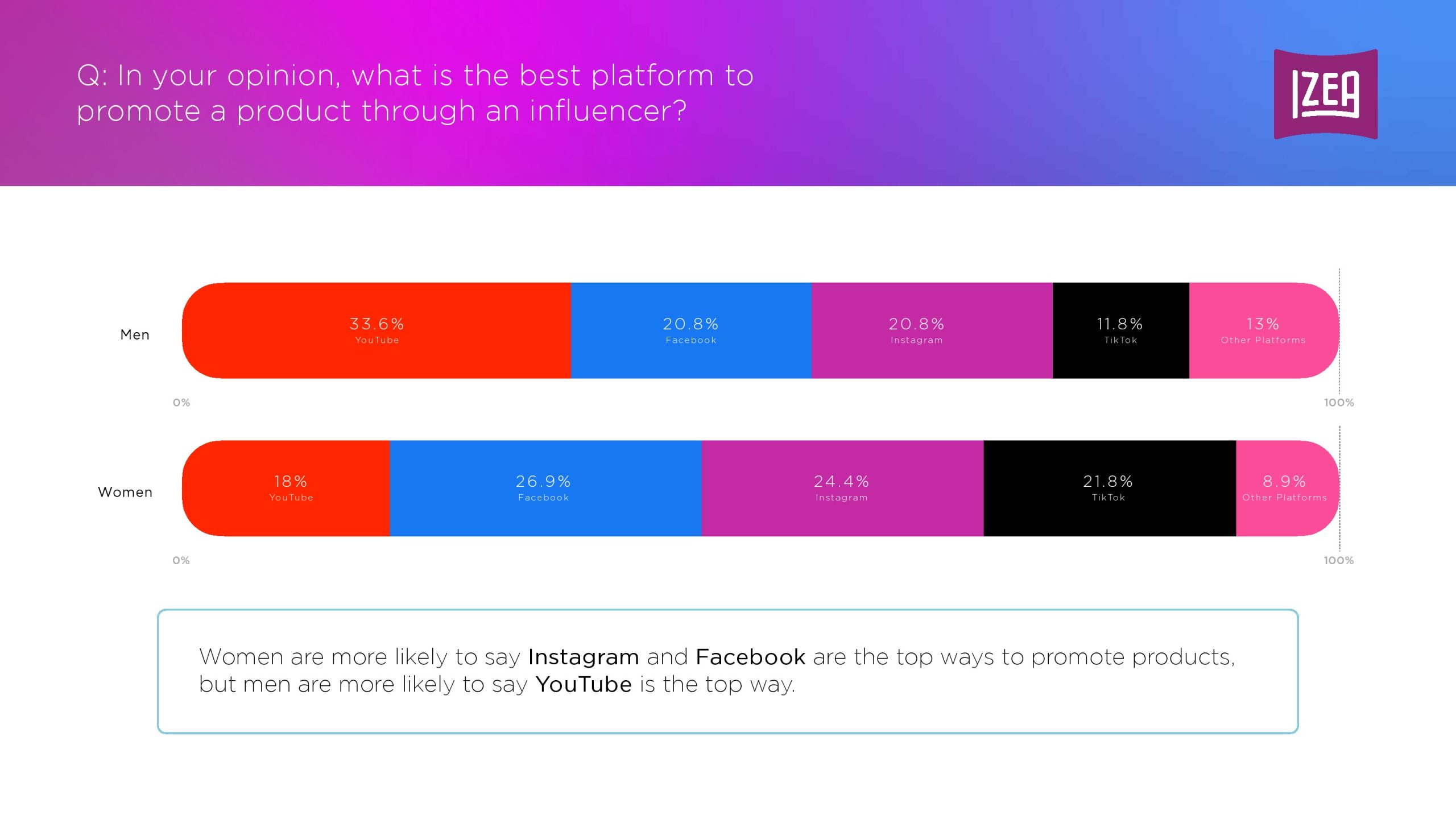 与社交媒体网红的帖子相比,男性更有可能说电视广告会激励他们尝试新产品,而女性则相反。