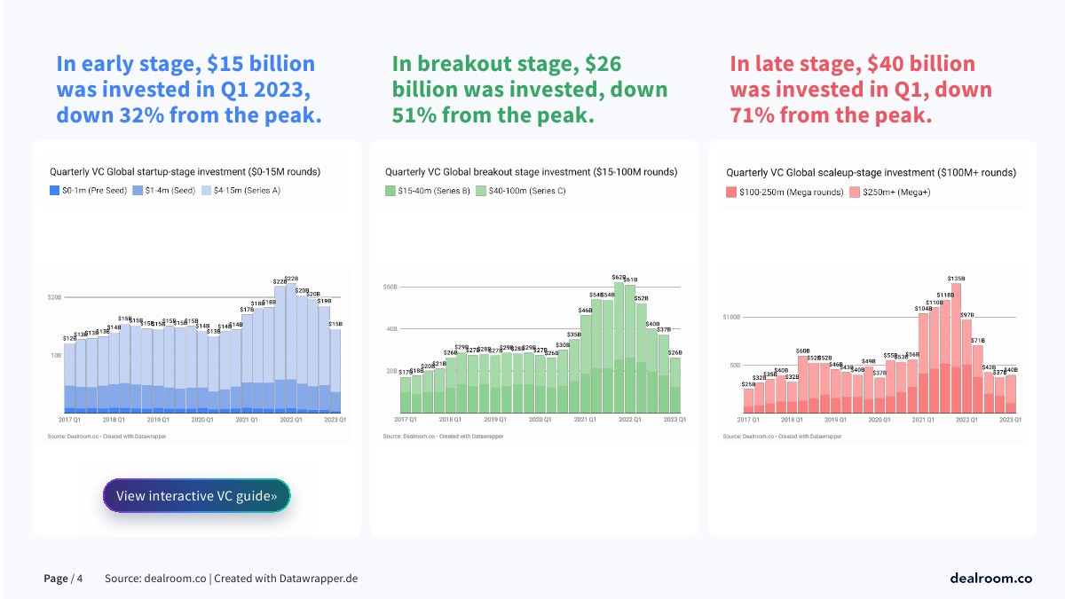 在后期阶段,第一季度的投资额为400亿美元,比峰值下降了71%。