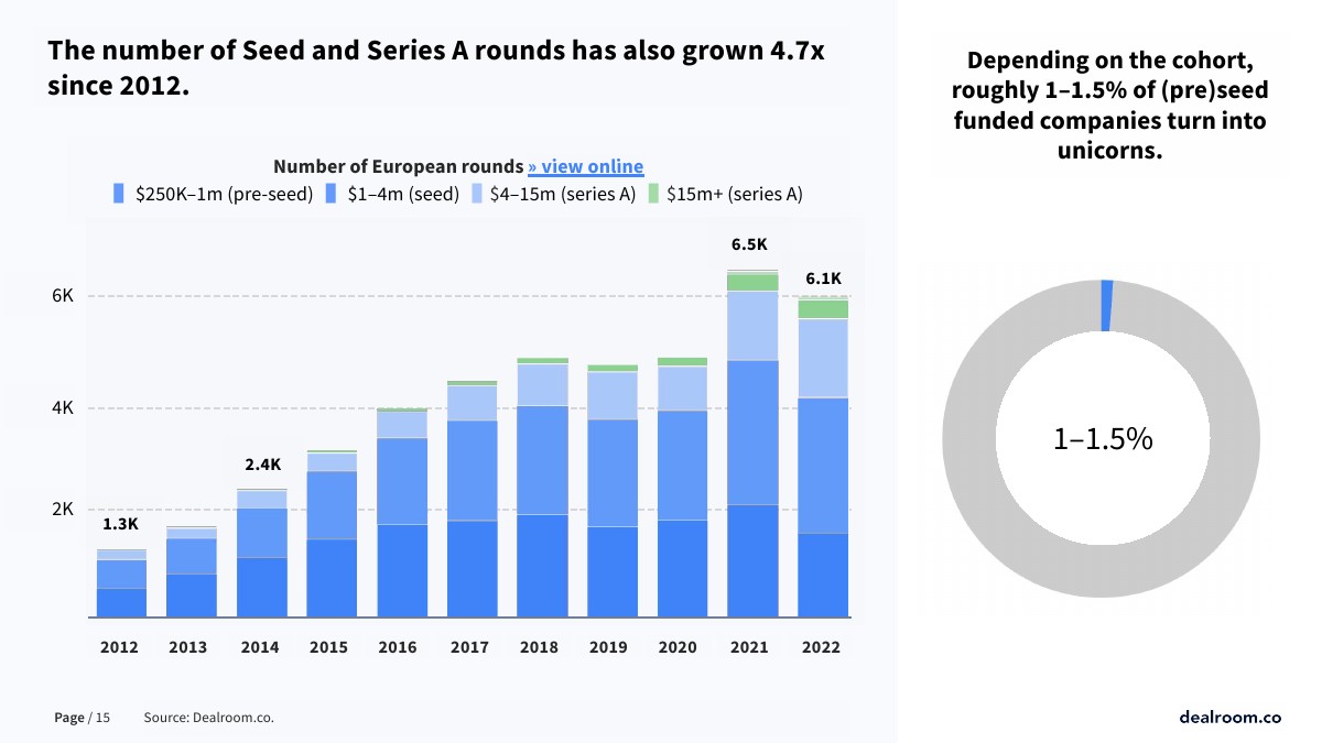 根据投资对象的不同,大约1-1.5%的种子公司最终会成为独角兽。