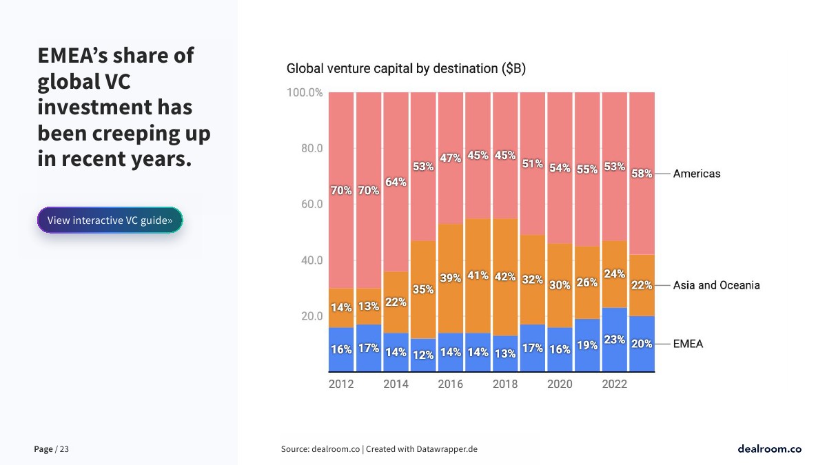 近年来,EMEA在全球风险投资中的份额一直在攀升。