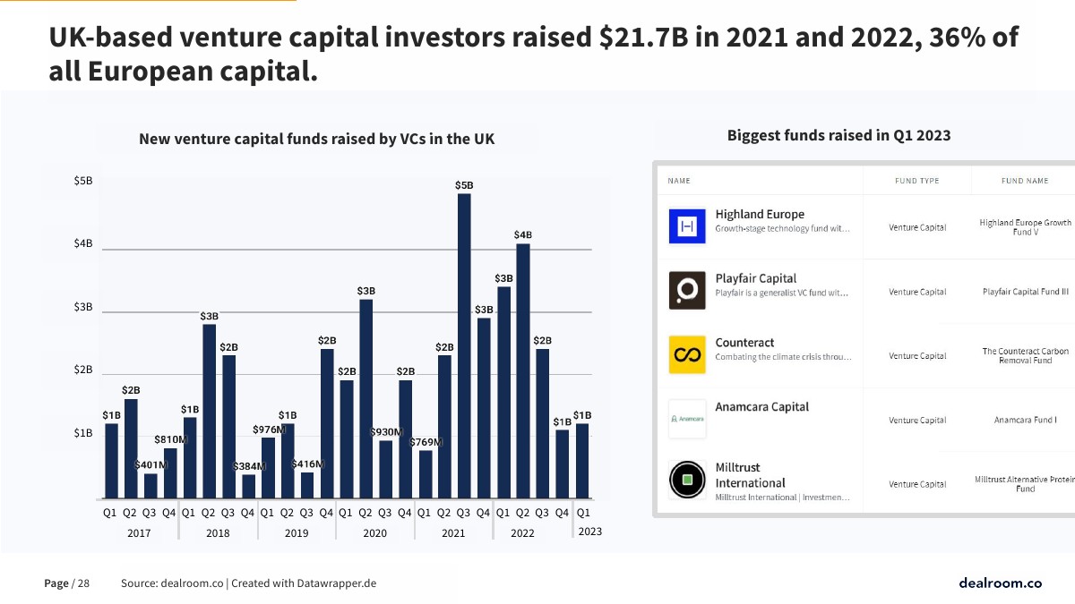 英国的风险投资者在2021年和2022年筹集了217亿美元,占欧洲资本总额的36%。