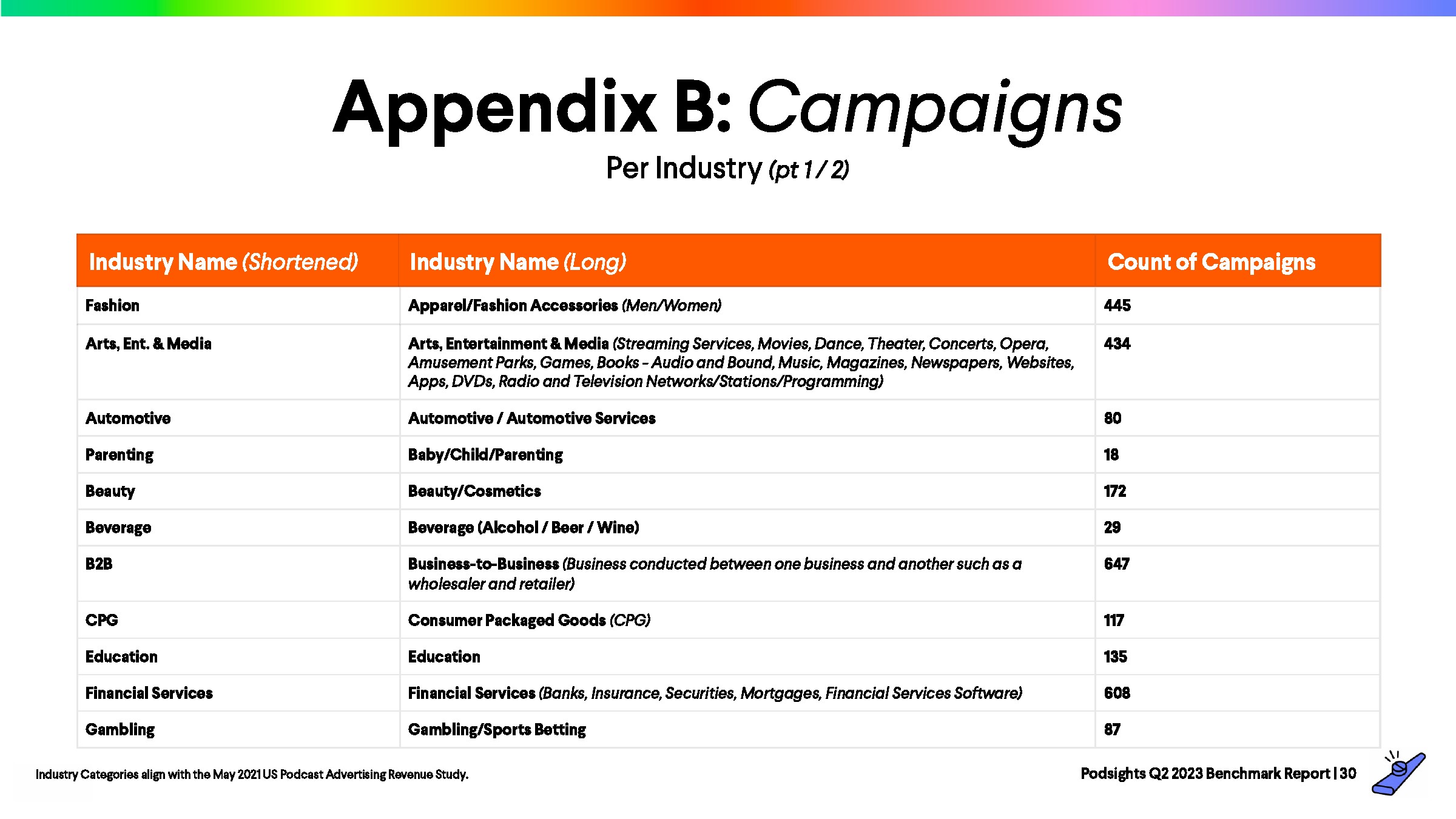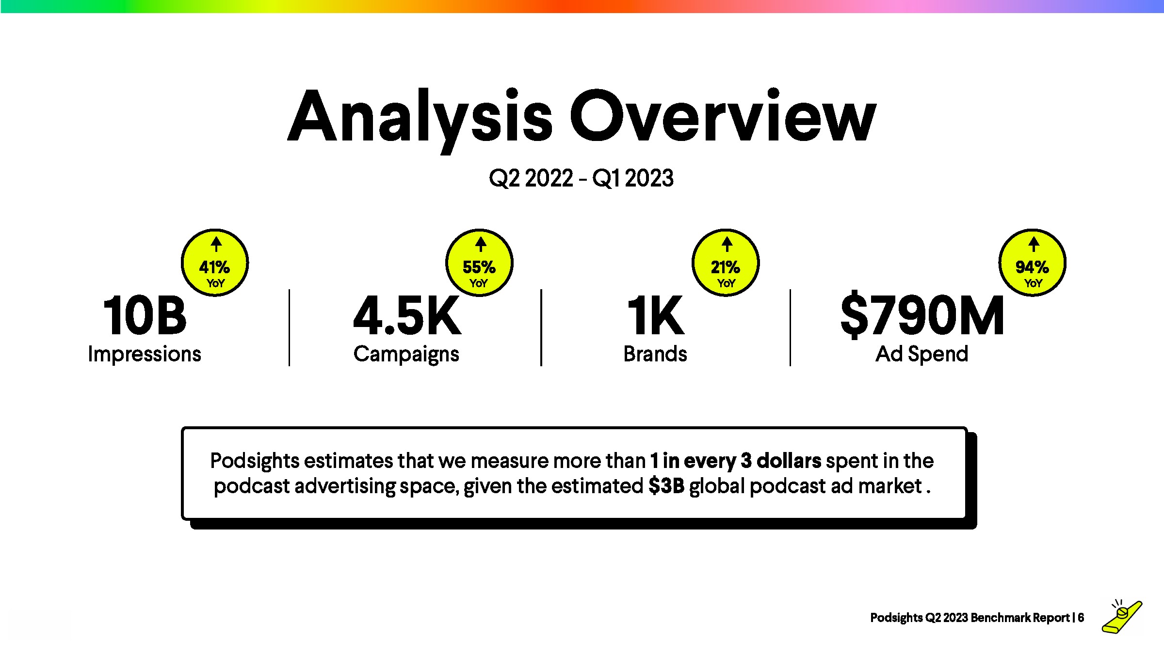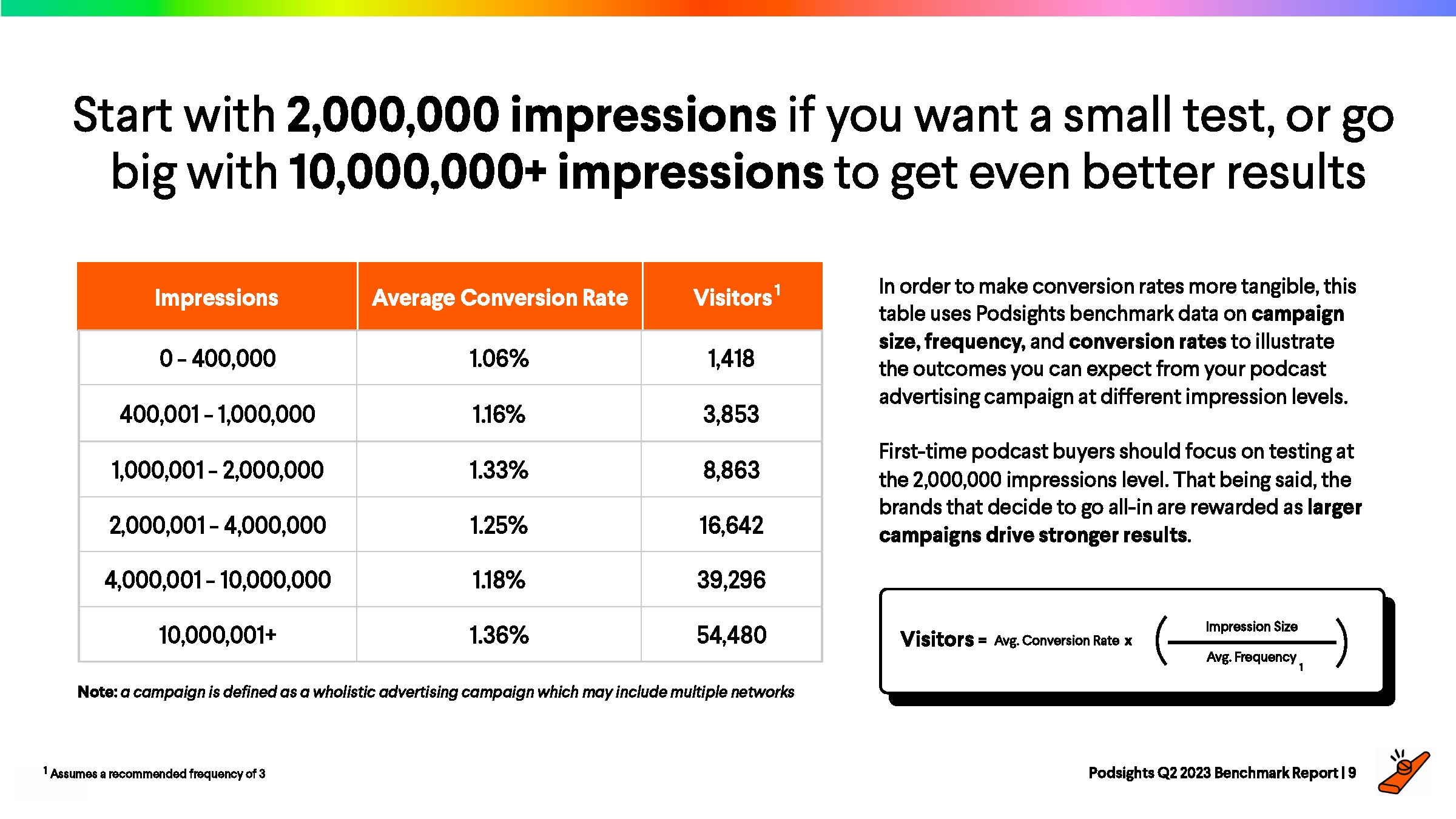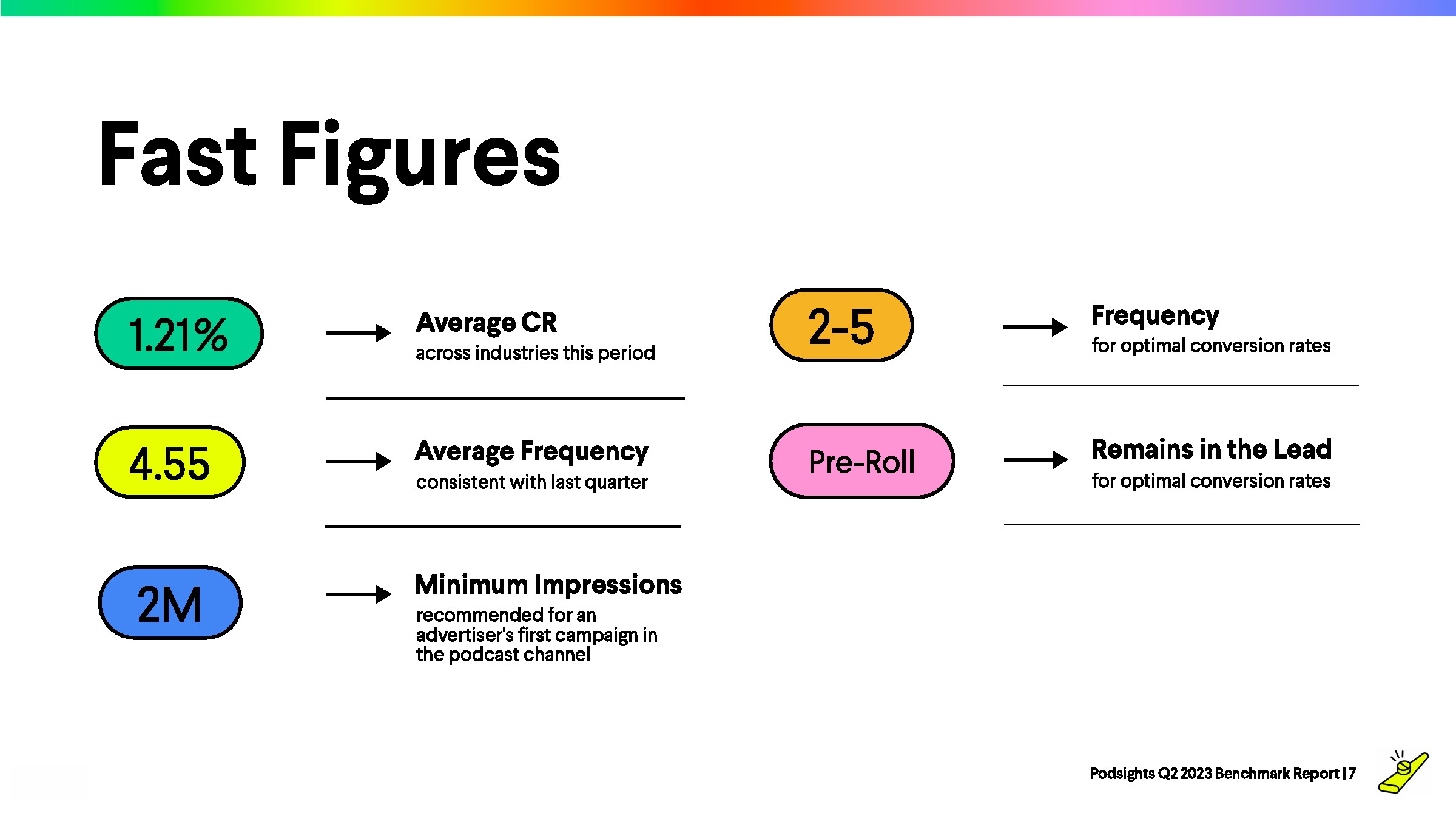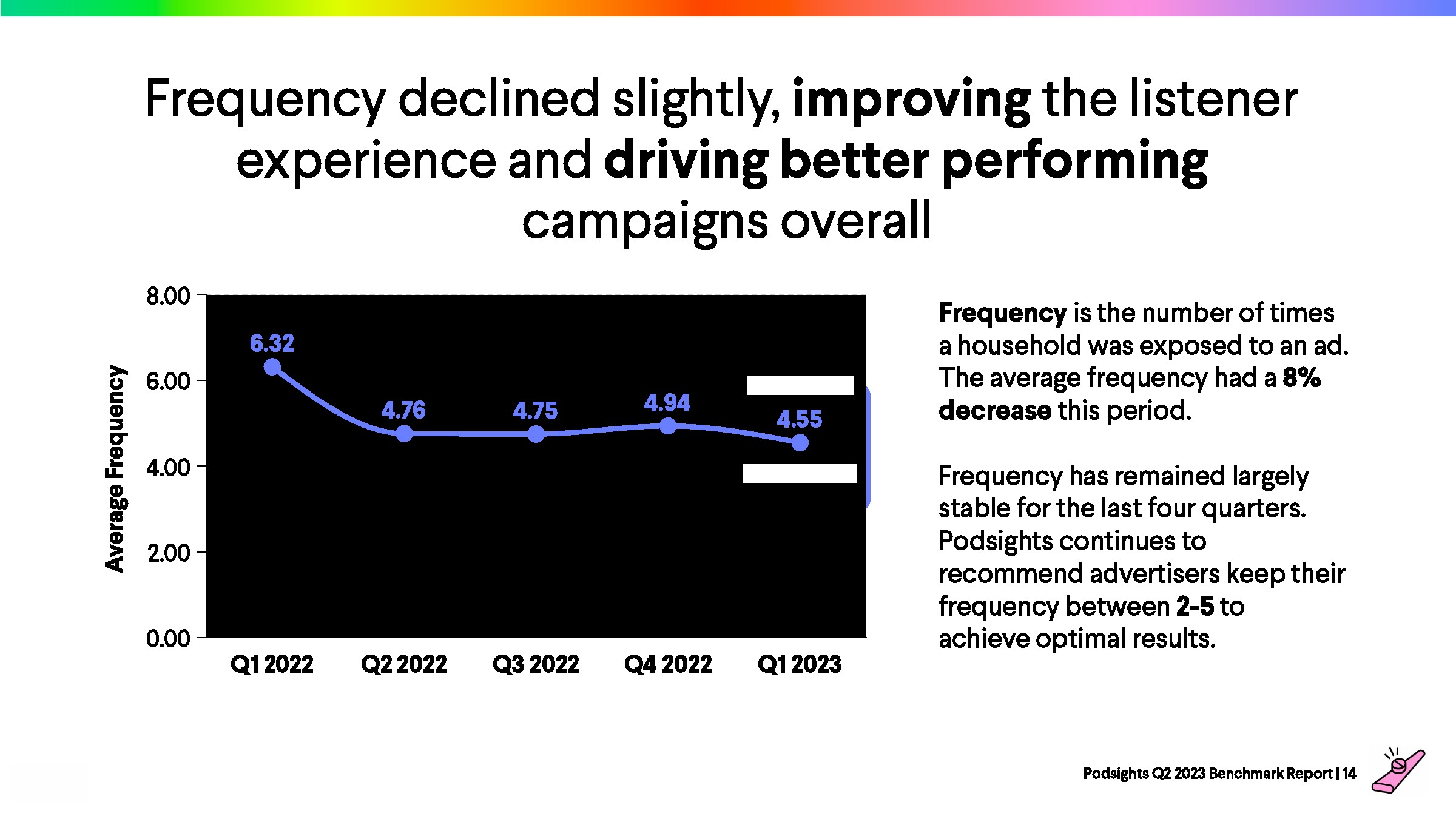 在过去的4个季度,频率基本保持稳定。Podsights继续建议广告主将广告频率保持在2-5次之间,以达到最佳效果。