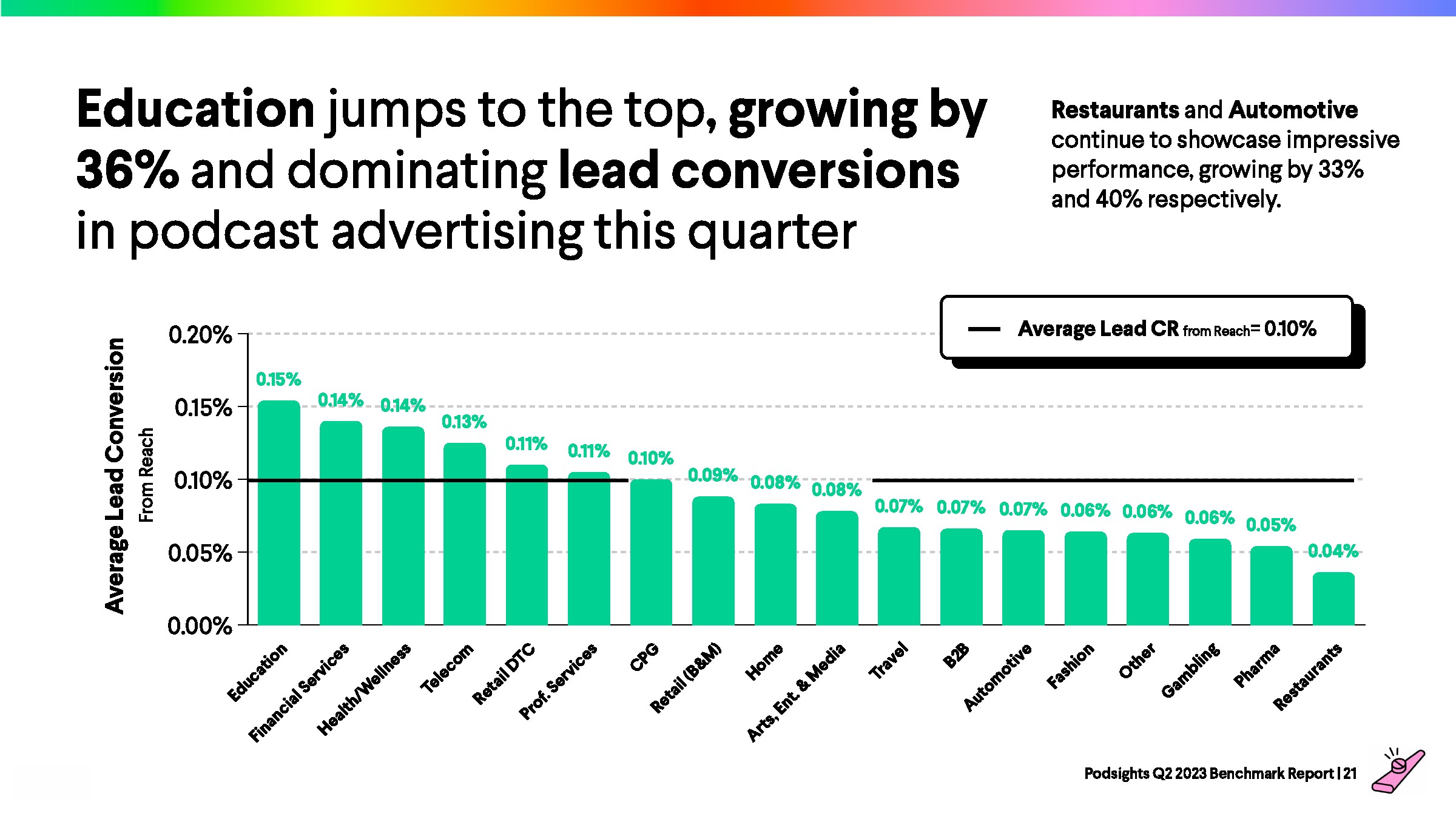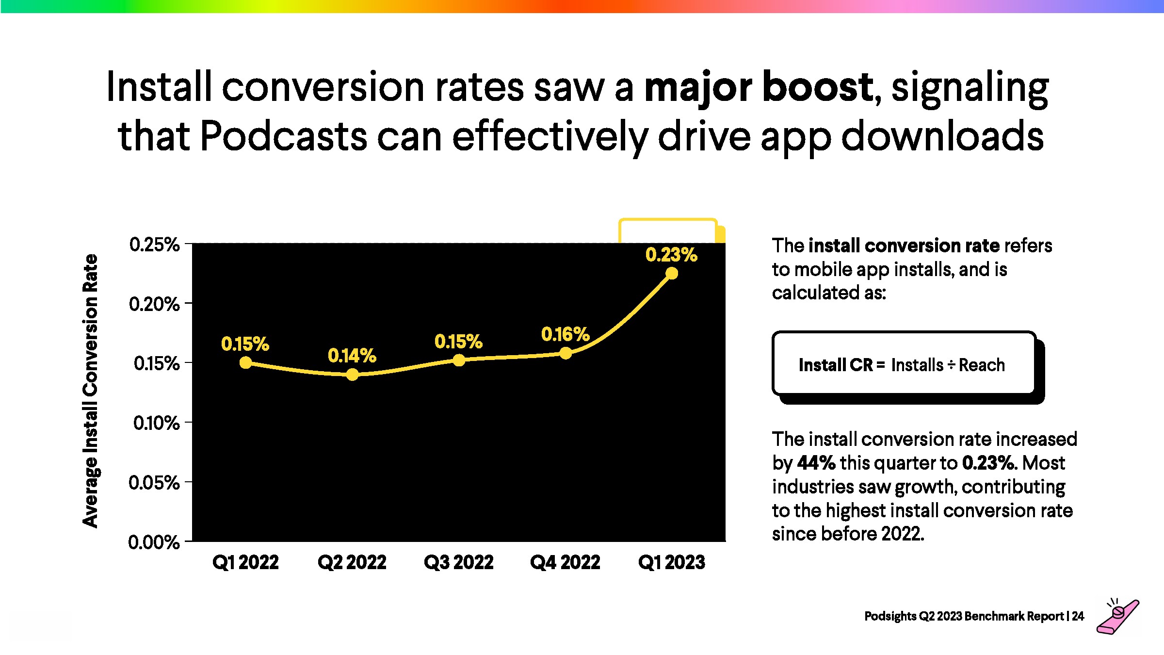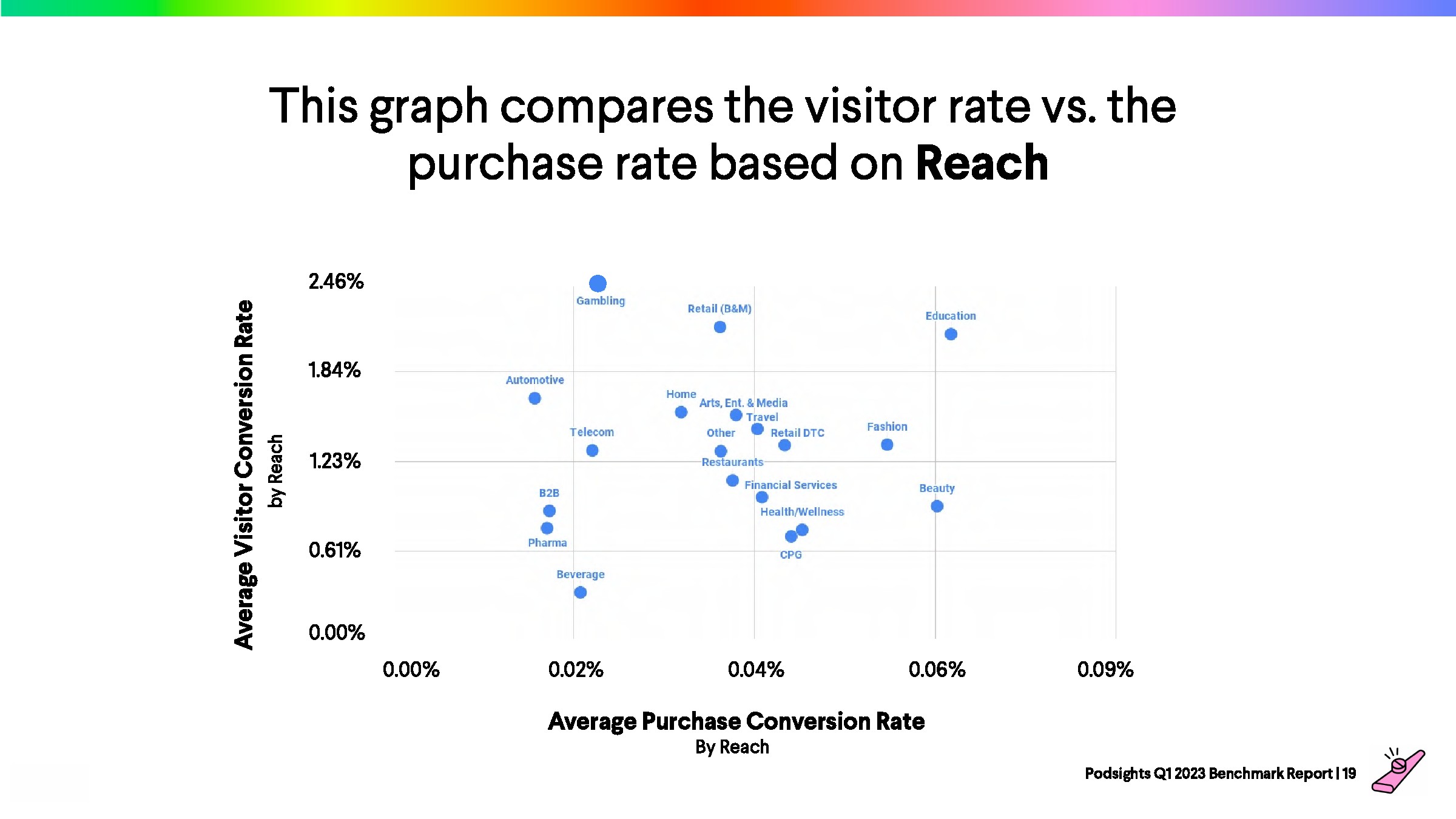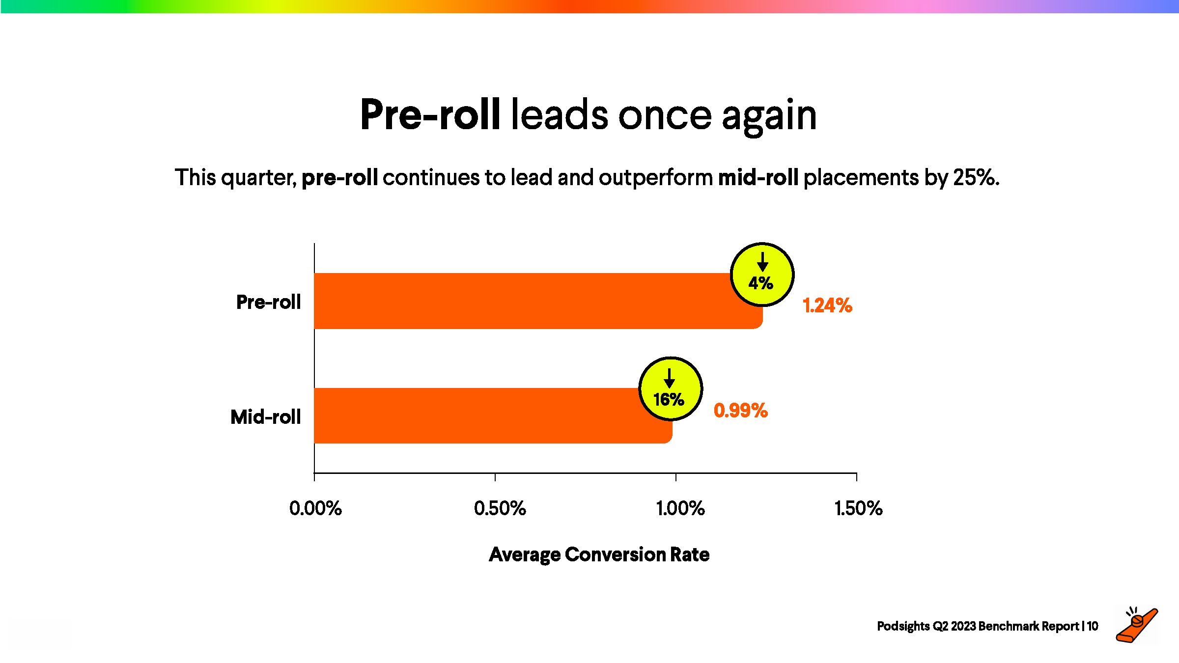 2023年第一季度,网站访问者的平均转化率为1.21%,比上一季度下降了8%。与前一年的下降率(-23%)相比,2023年播客媒体在年初表现强劲。