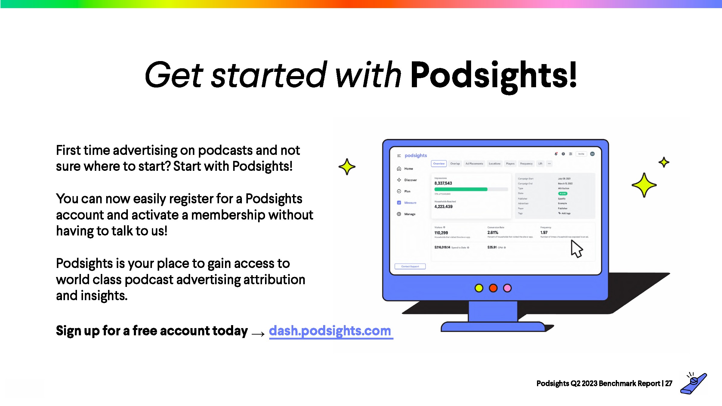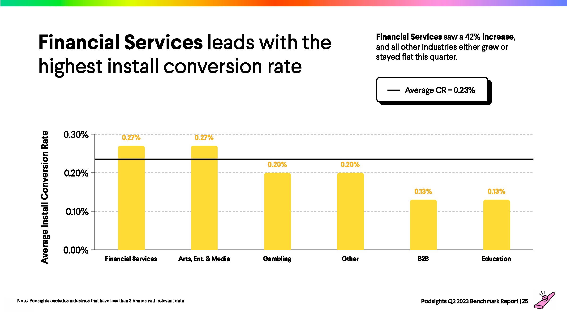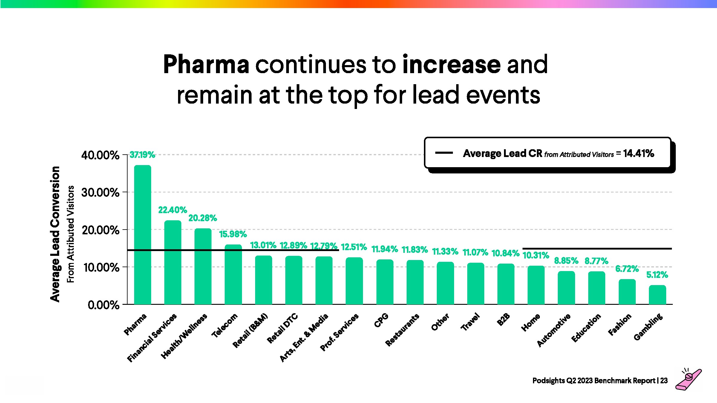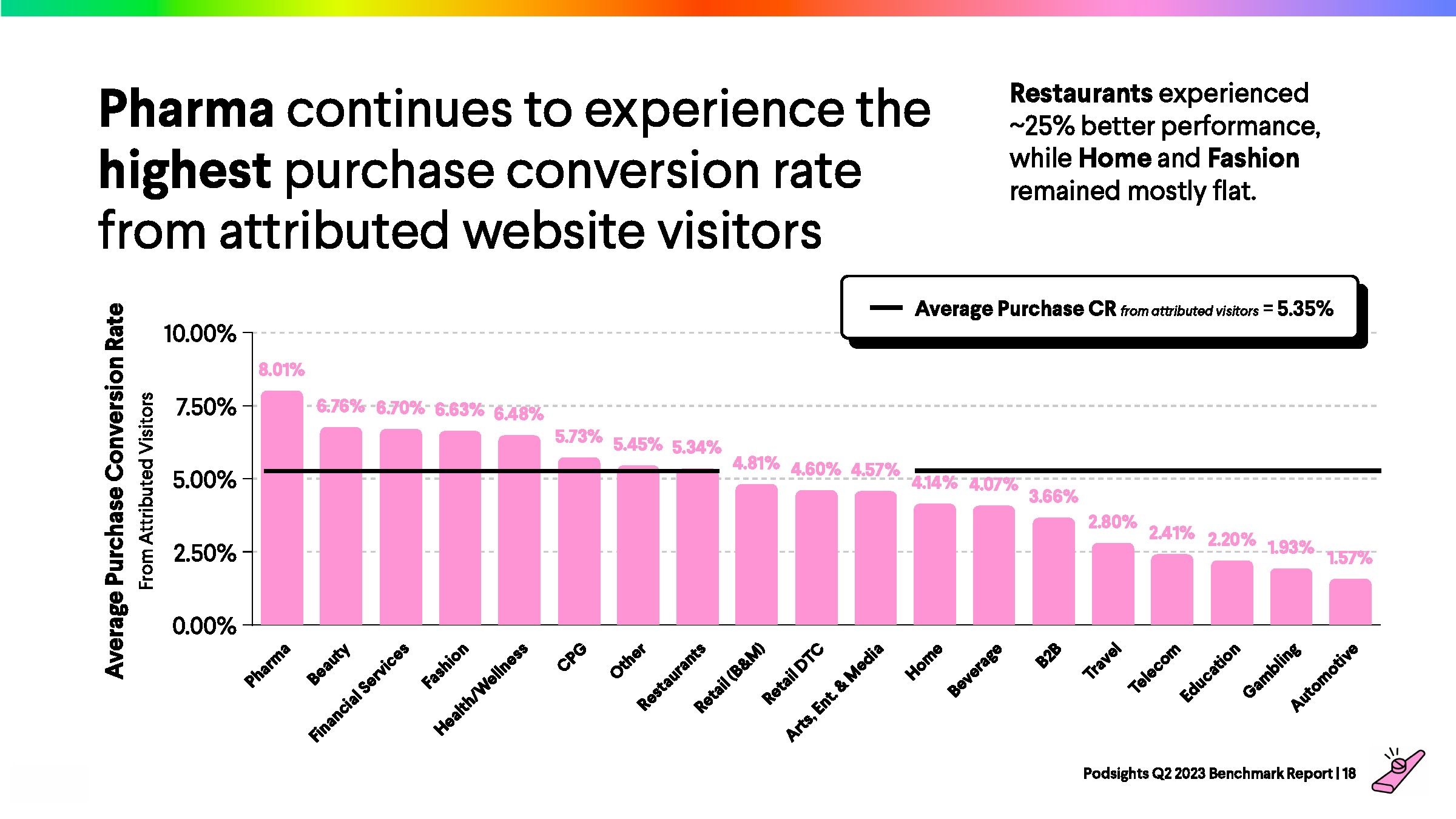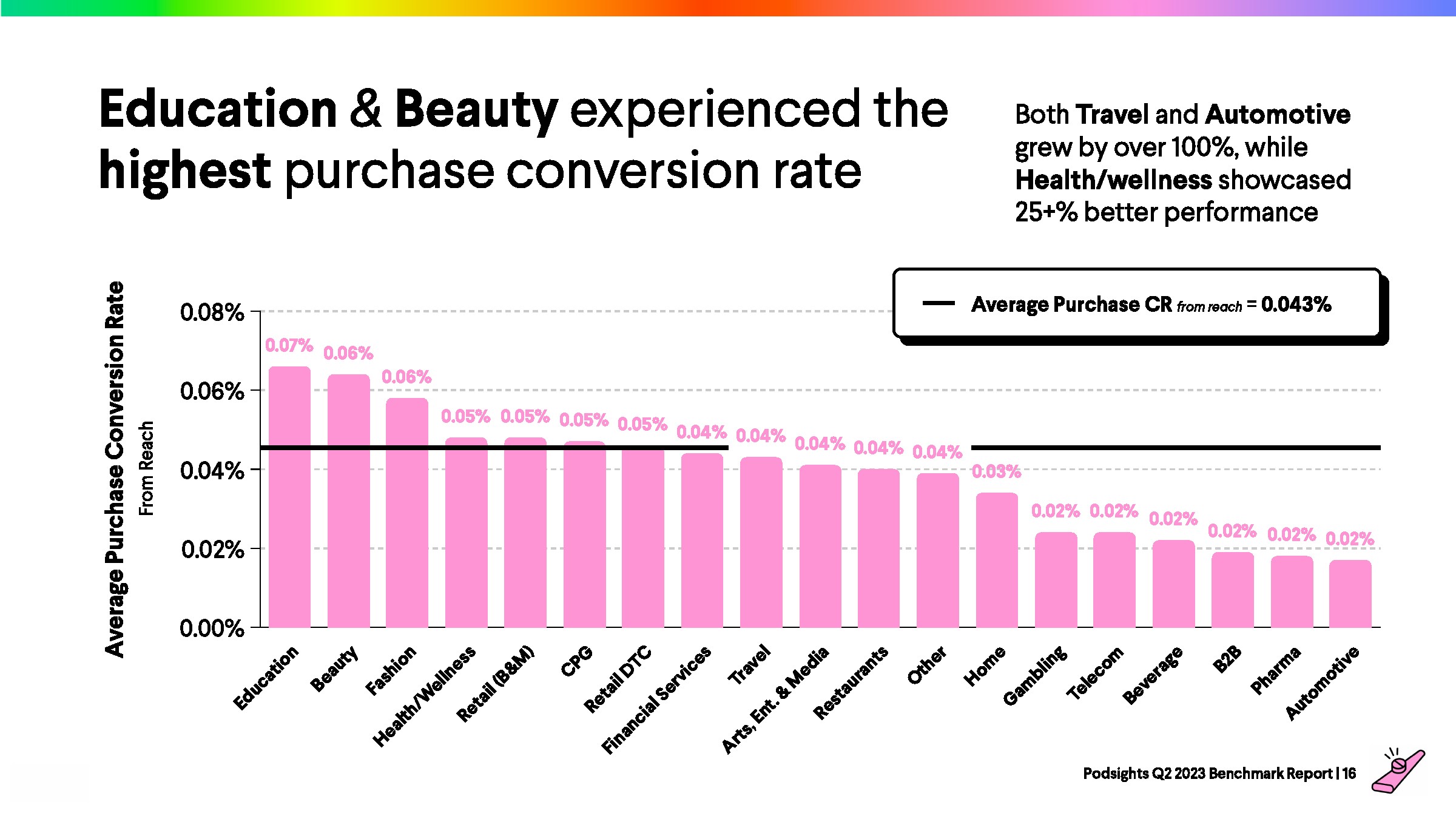2023年第一季度,网站访问者的平均转化率为1.21%,比上一季度下降了8%。与前一年的下降率(-23%)相比,2023年播客媒体在年初表现强劲。