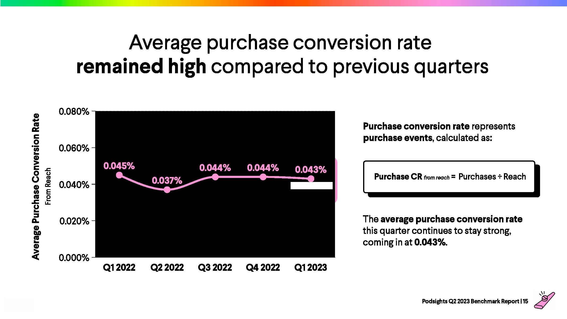 本季度的平均购买转化率继续保持强劲,达到0.043%。