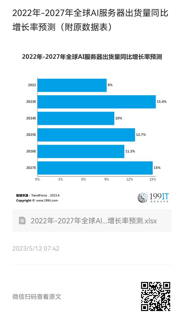 - TrendForce:预估2023年AI服务器出货量近120万台 年增38.4%