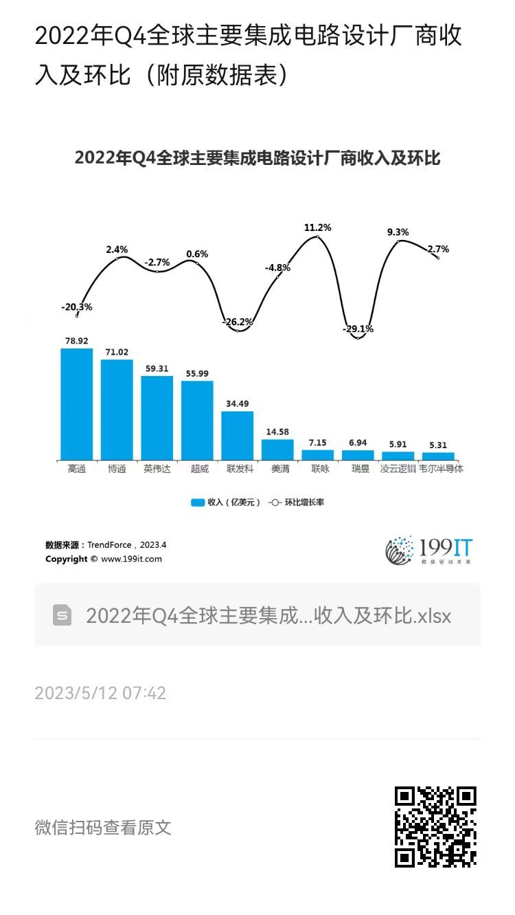 - 2022年Q4全球主要集成电路设计厂商收入市场份额(附原数据表)