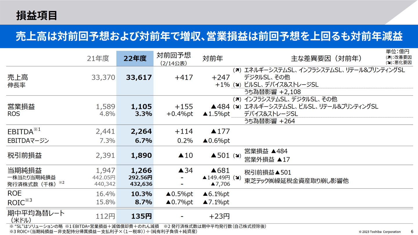 近日消息,东芝公布了 2022 年度财务报告,全年营业收入 33617 亿日元(当前约 1731.28 亿元人民币),同比增加 0.7%; 运营利润 1105 亿日元(当前约 56.91 亿元人民币),同比下降 30.5%;净利润 1266 亿日元(当前约 65.2 亿元人民币),同比下降 35%。附主要财务数据如下: