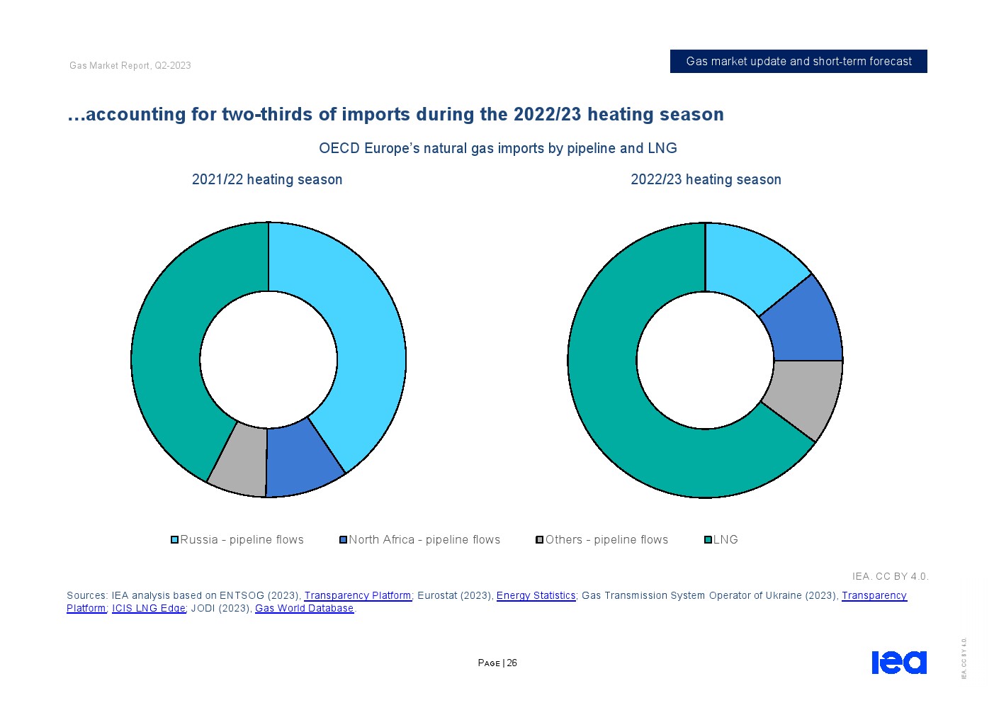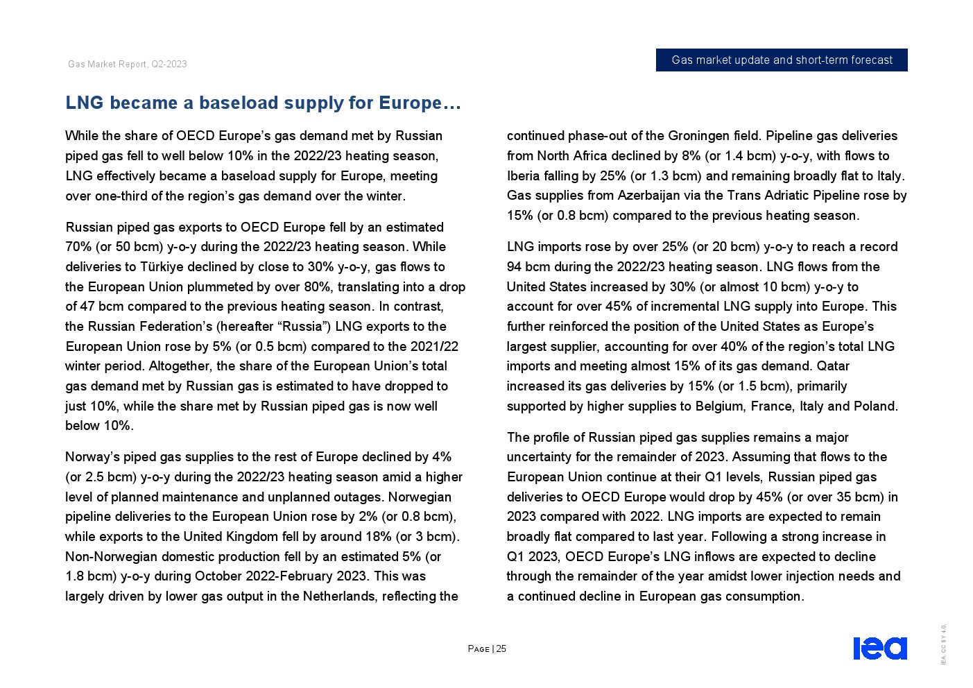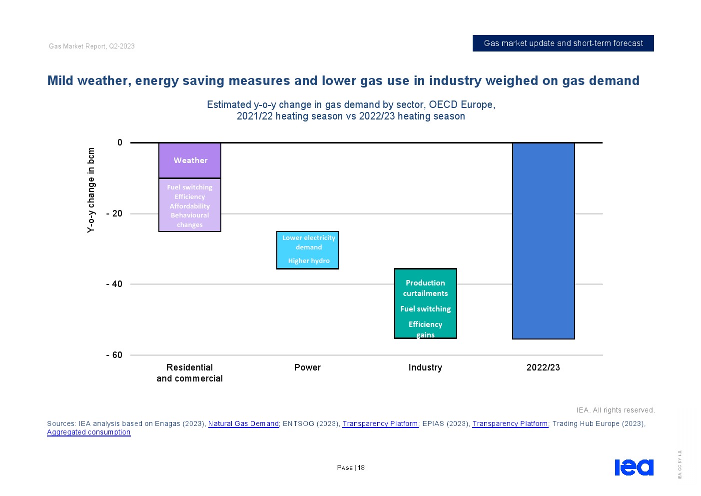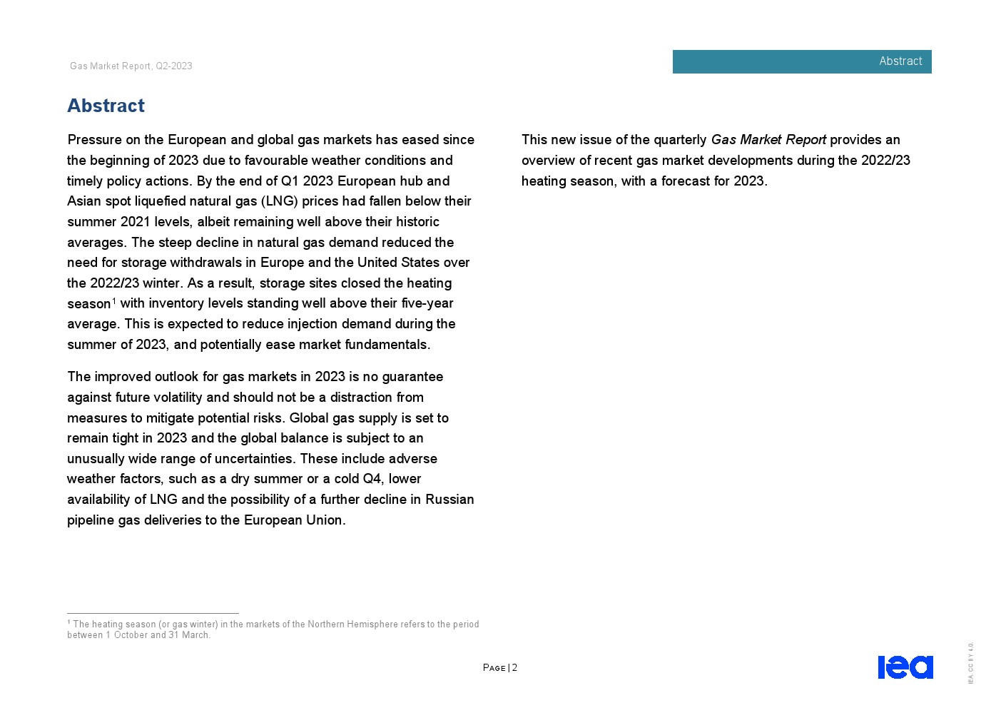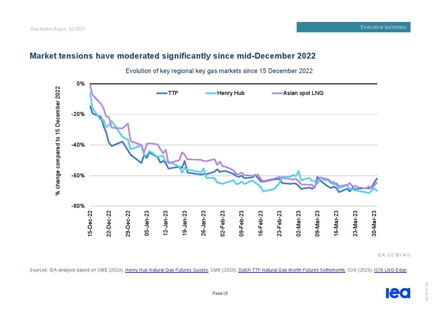 IEA发布了“2023年第二季度天然气市场报告”。全球天然气市场在2022/23供暖季逐渐走向再平衡。从2022年12月中旬到2023年第一季度末,东北亚、北美和欧洲主要市场的现货天然气价格下跌了近70%,而储气库在供暖季结束时远高于五年平均水平。