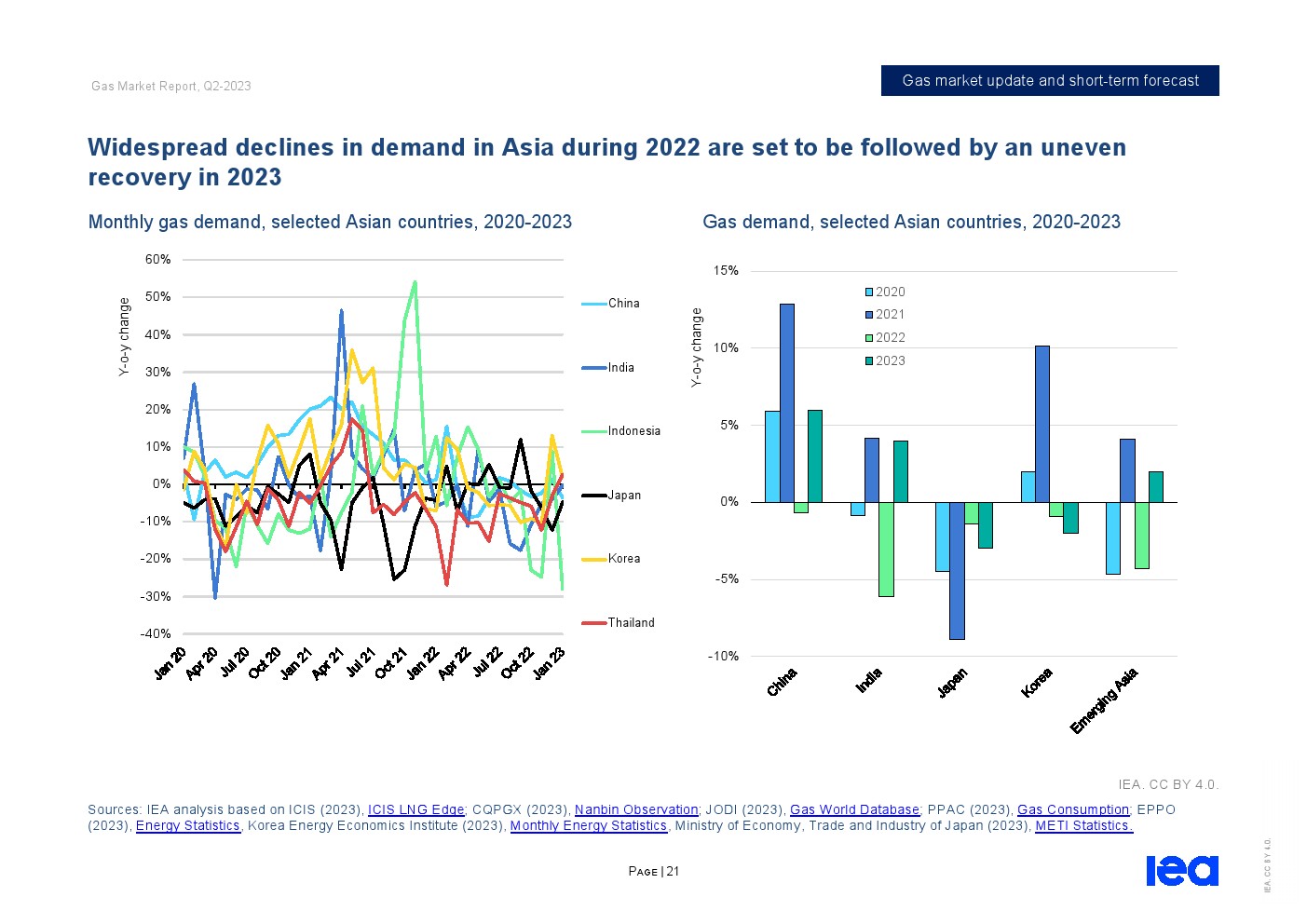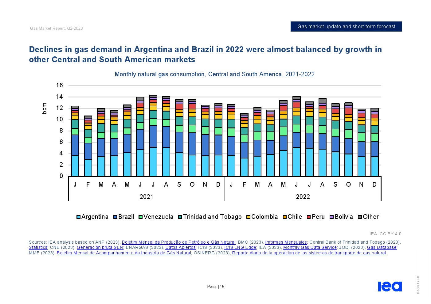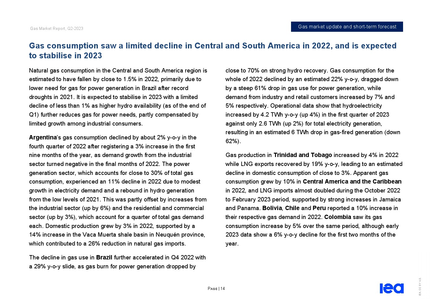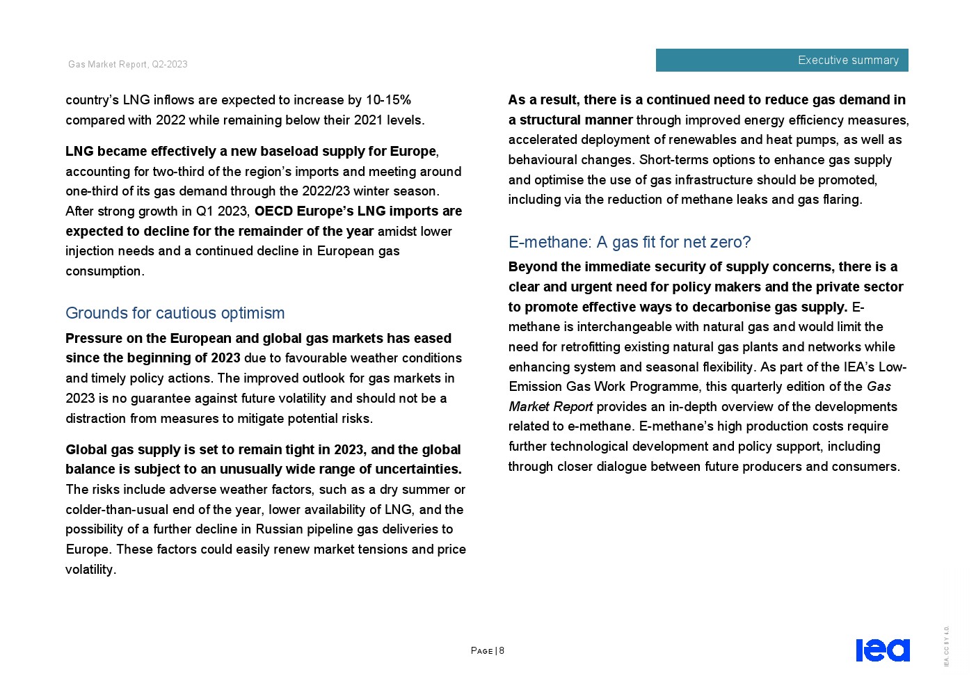 亚太和中东的需求增加抵消了欧洲和北美的预期下降。在亚洲,天然气需求预计将增长近3%,其中中国和印度是主要推动力。在经济活动复苏和工业用气可能增加的支持下,预计2023年中国天然气需求将增长6%以上。在伊朗和沙特阿拉伯的推动下,中东地区的天然气需求预计将增长2%。欧洲发达经济体的天然气需求预计将下降5%,因为可再生能源的迅速扩张给燃气发电带来了压力。在经历了2022年的强劲增长之后,由于空间供暖、发电和工业天然气使用量减少,北美的天然气需求预计将下降2%。