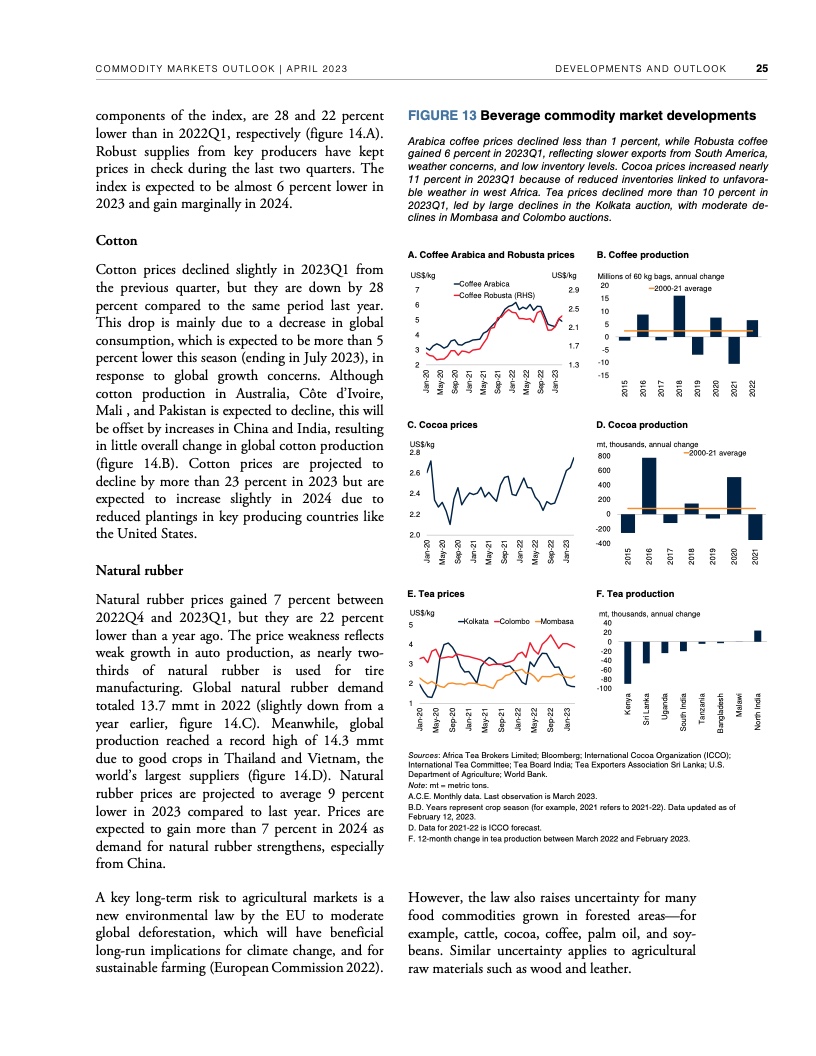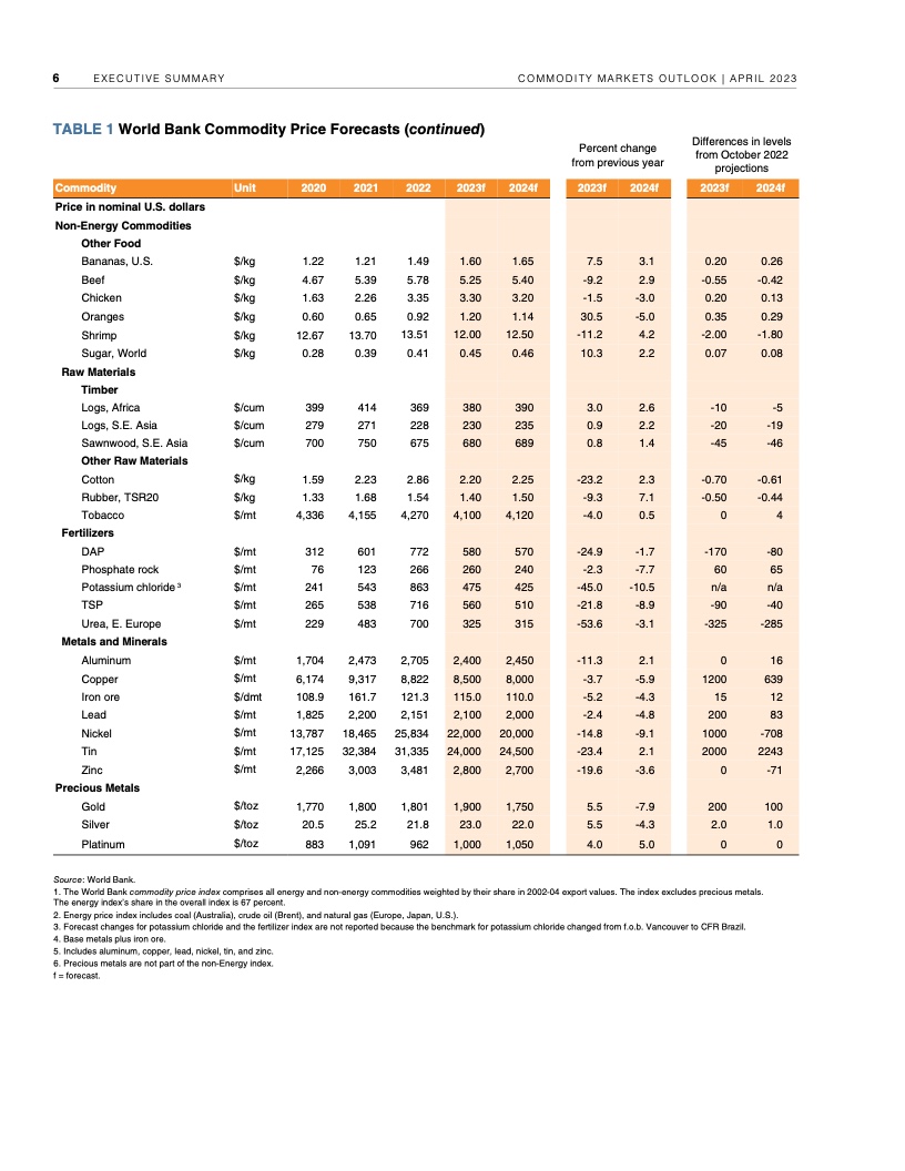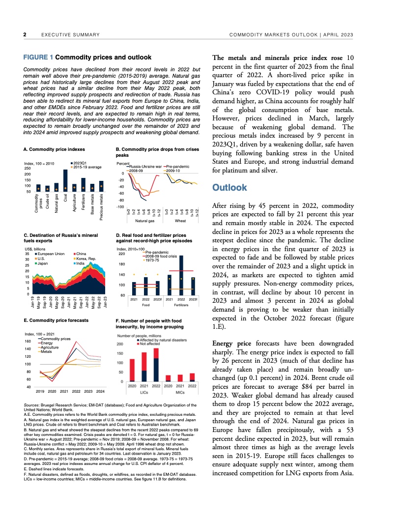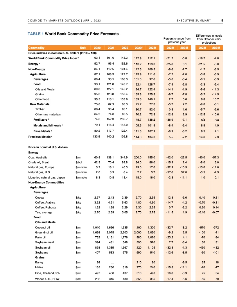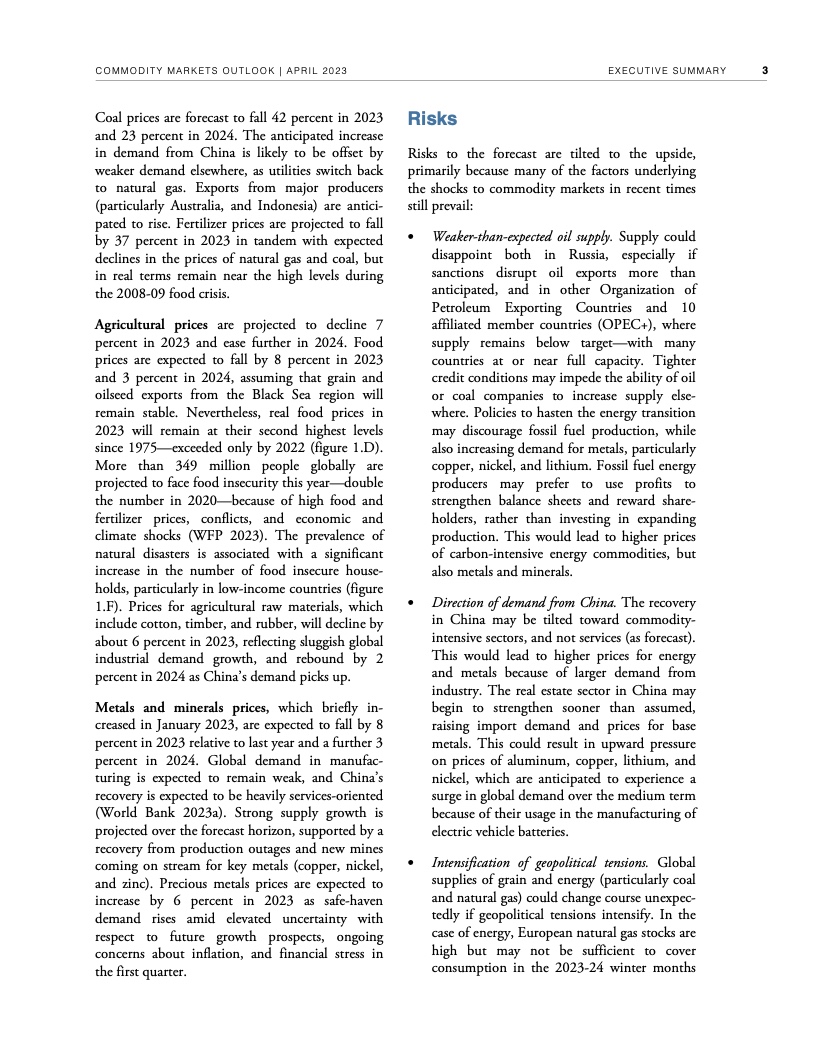据世界银行预测局局长阿伊汗·高斯称,大宗商品价格下跌有助于全球总体通胀率的降低。但各国央行需要谨慎,因为石油供应疲软、地缘政治危机以及极端天气等广泛的因素都可能导致价格上涨并带来通胀压力。