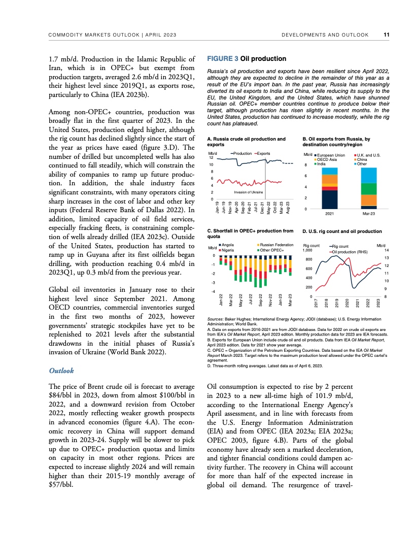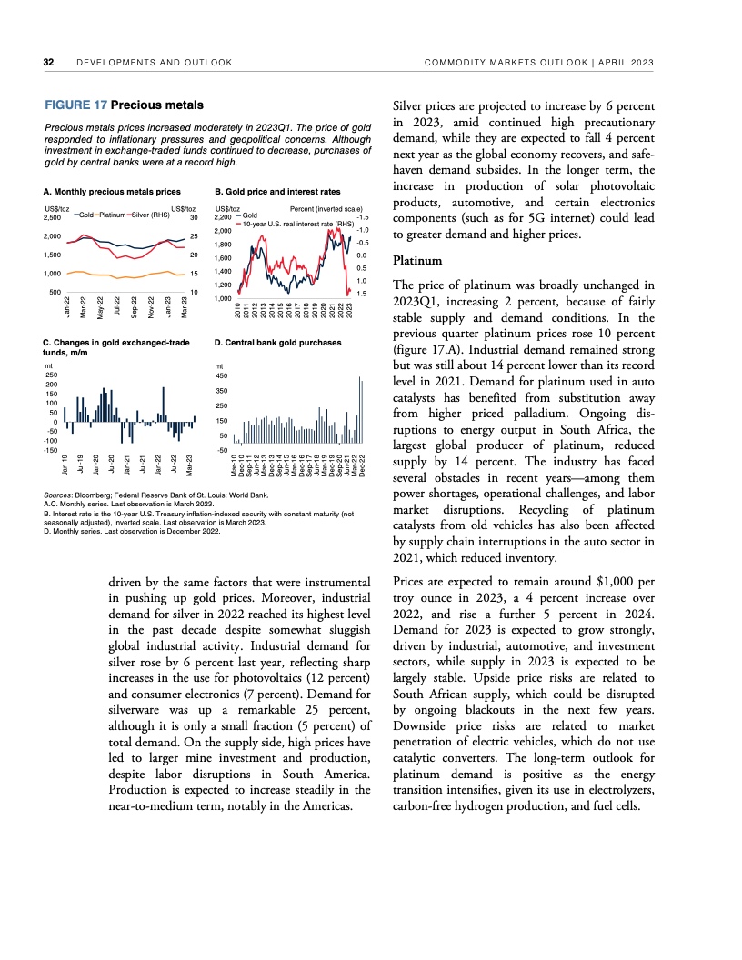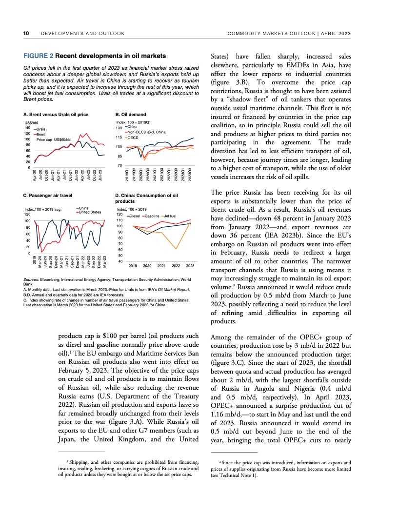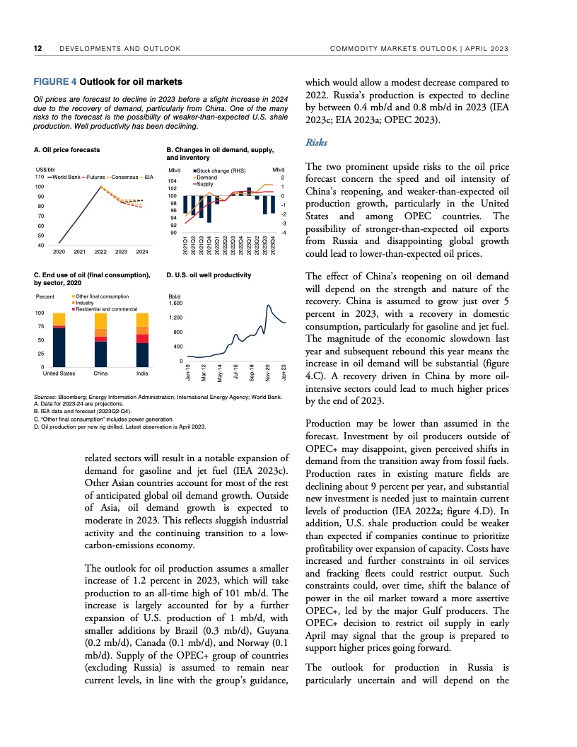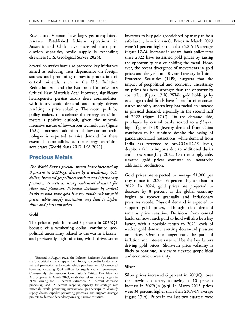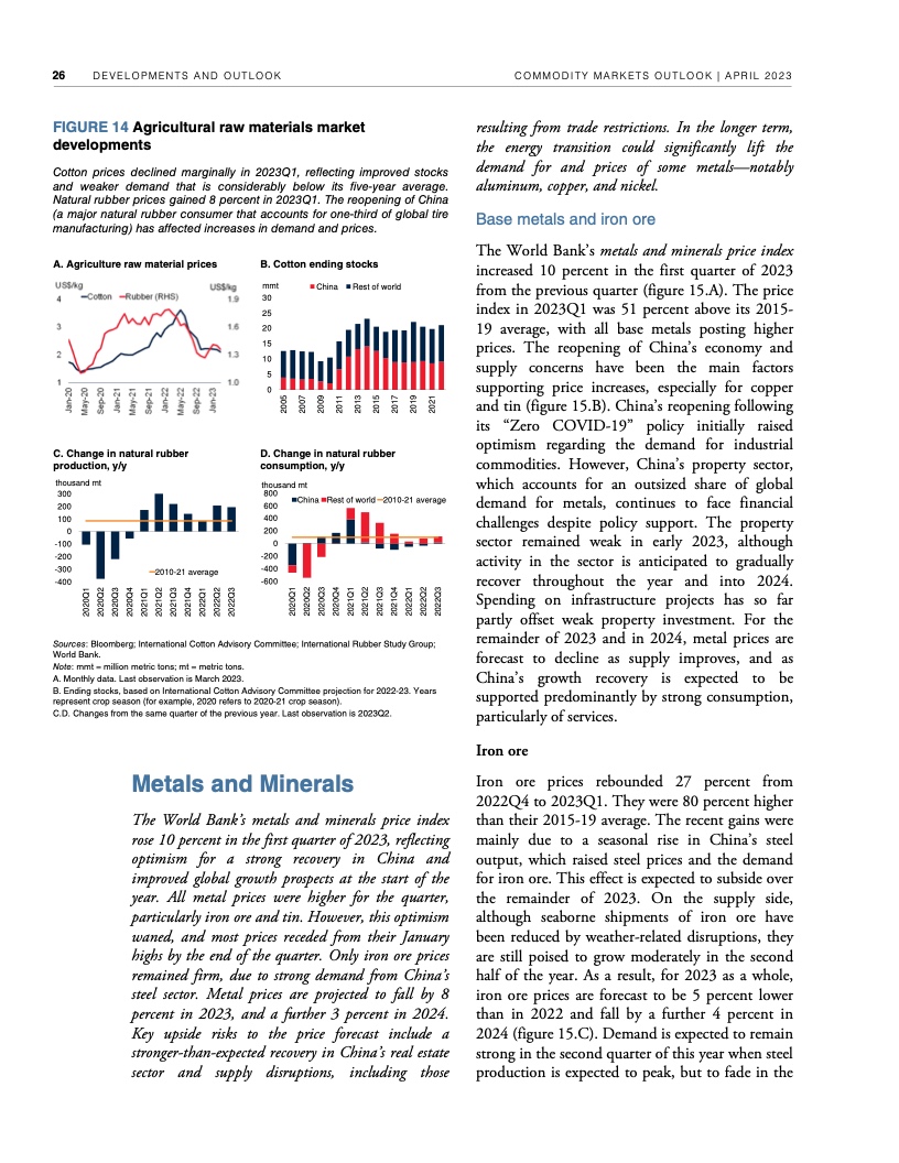 据世界银行预测局局长阿伊汗·高斯称,大宗商品价格下跌有助于全球总体通胀率的降低。但各国央行需要谨慎,因为石油供应疲软、地缘政治危机以及极端天气等广泛的因素都可能导致价格上涨并带来通胀压力。