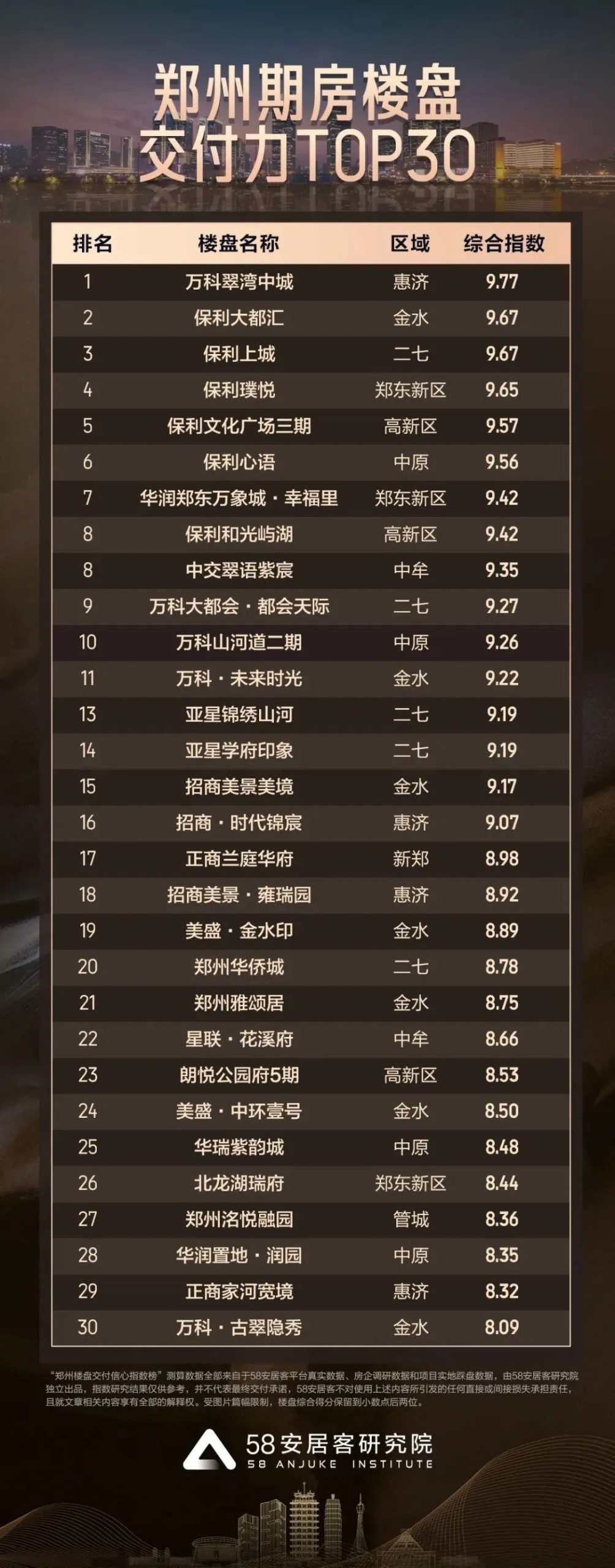 榜单分类:郑州期房楼盘交付力TOP30、各区域期房楼盘交付力入围榜