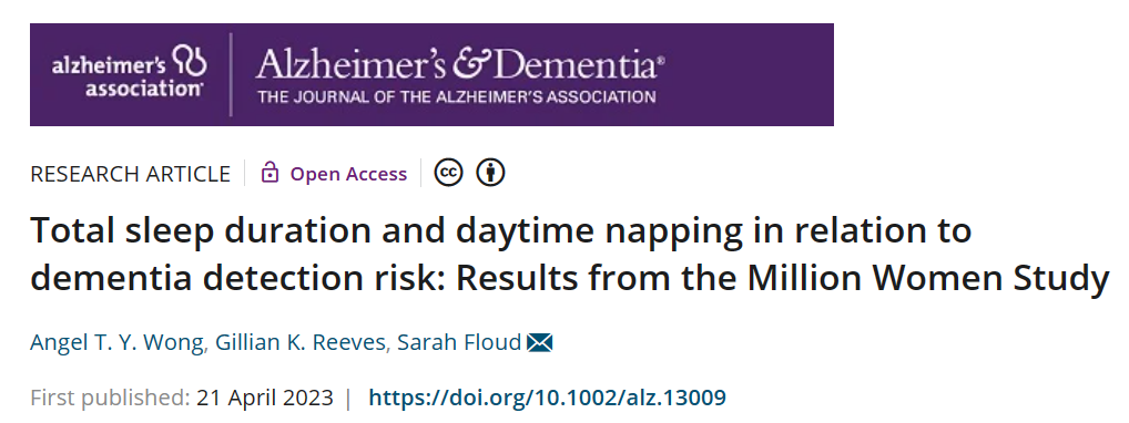 近期,发表在Alzeheimer’s & Dementia上的一项超大型研究带来了令人略感意外的结果。研究者们分析了83万名女性参与者的数据,随访近17年得出的结果认为,睡眠时间过长与患痴呆风险之间并无联系,而且睡眠时间较短就算与痴呆之间存在关联,影响也非常小。