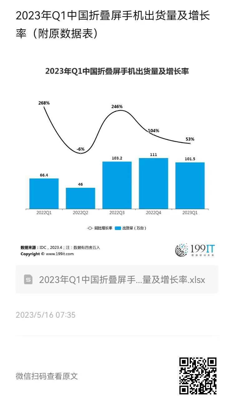 - 2023年Q1中国折叠屏手机出货量及增长率(附原数据表)
