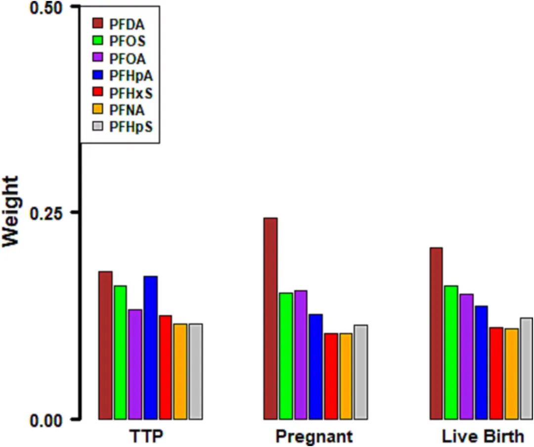 对不同的PFAS进行分析后,他们得出了一致的结论——PFDA、PFOS、PFOA和PFHpA与降低女性生育能力的关联最大。
