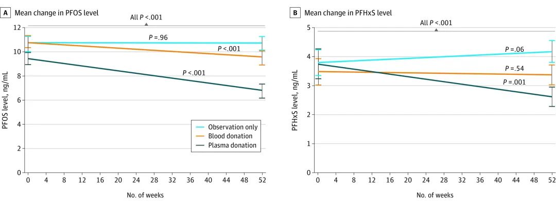 巧合的是,近日JAMA子刊给出了一个让人意想不到的妙招——来自澳大利亚的科学家竟发现,定期献血可以将血液中PFAS水平降低30%,这或是一种有效的干预措施。
