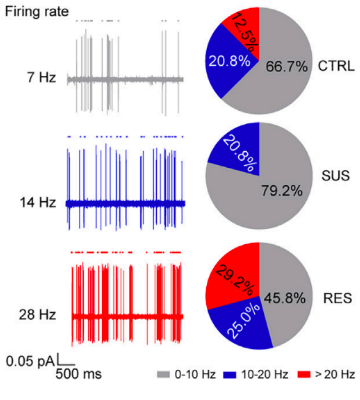 弹性小鼠A1区域中某些PV-INs放电频次的变化