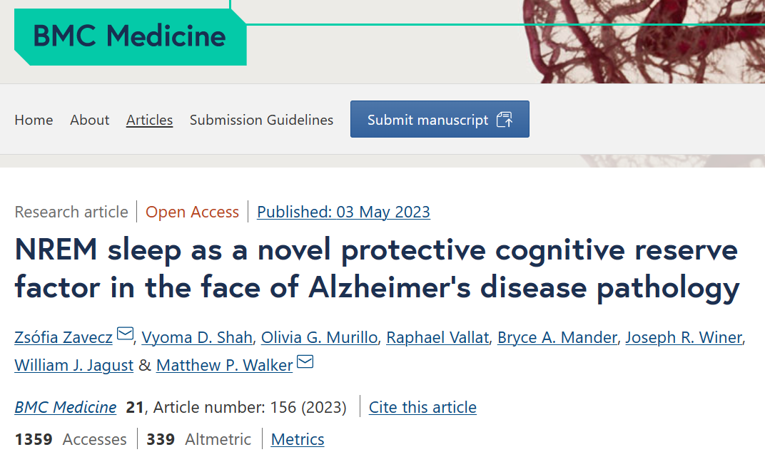 [1]Zavecz, Z., Shah, V.D., Murillo, O.G. et al. NREM sleep as a novel protective cognitive reserve factor in the face of Alzheimer’s disease pathology. BMC Med 21, 156 (2023). https://doi.org/10.1186/s12916-023-02811-z