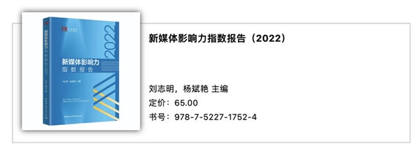 中国社会科学出版社重点推荐:《新媒体影响力指数报告(2022)》