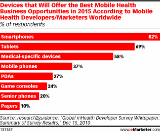 Research2guidance:智能移动设备驱动医疗商机 尽管潜力巨大,移动医疗市场却起步蹒跚,被监管、个人隐私和缺乏移动标准、行业选手-医疗服务提供商、医药公司、保险公司、政府监管机构以及其他所束缚,还在寻找着一条清晰而有效的发展路径 根据research2guidance一份来自对移动医疗开发者和营销者的调研,智能手机是开启移动医疗产业的钥匙,然后是平板。这两者的普及率都在迅速攀升,创造着移动医疗市场的商机。 Pew研究发现,不同的人群对移动医疗资源的需求不同,男人相比女人更多地会通过移动设备跟踪他们的健康状况;黑人和西班牙裔人,以及年龄在18-29岁的人对移动页面和app获取医疗信息的使用率要比较高。 手机给了用户更好管理医疗记录的工具,他们可以用来寻找和分享他们的医疗信息,越来越多的用户掌握着他们自己的健康状况,这位营销者和开发者创造了新的机会。 更多阅读:Research2guidance:预计2017年中国家庭80%拥有智能手机comScore:2012年10月美国智能移动设备市场份额research2guidance:调查显示手机应用市场仍呈现分化趋势Research2guidance:2012年移动电子商务整体交易额将达116亿美元Research2Guidance:2011年9月中旬Android Market应用总下载量60亿次Research2guidance:2011年9月谷歌电子市场提交应用总数超50万research2guidance:37%发布在Android Market内的应用随后都被清理Strategy Analytics:2021年Q1全球智能手机批发总收入超过1000亿美元Strategy Analytics:2021年Q2全球智能手机出货量同比增长11%,达到3.142亿部IDC:2021年第二季度全球智能手机出货量3.13亿部 增长13.2%爱立信:2011年中国移动宽带用户使用行为研究报告Globalwebindex:全球移动互联网的使用达到65%Research2Guidance:2012年五大应用平台上付费应用市场规模达到80亿美元Research2Guidance:Android Market应用移除率高达37%research2guidance:2011年全球移动应用下载营收为68亿美元
