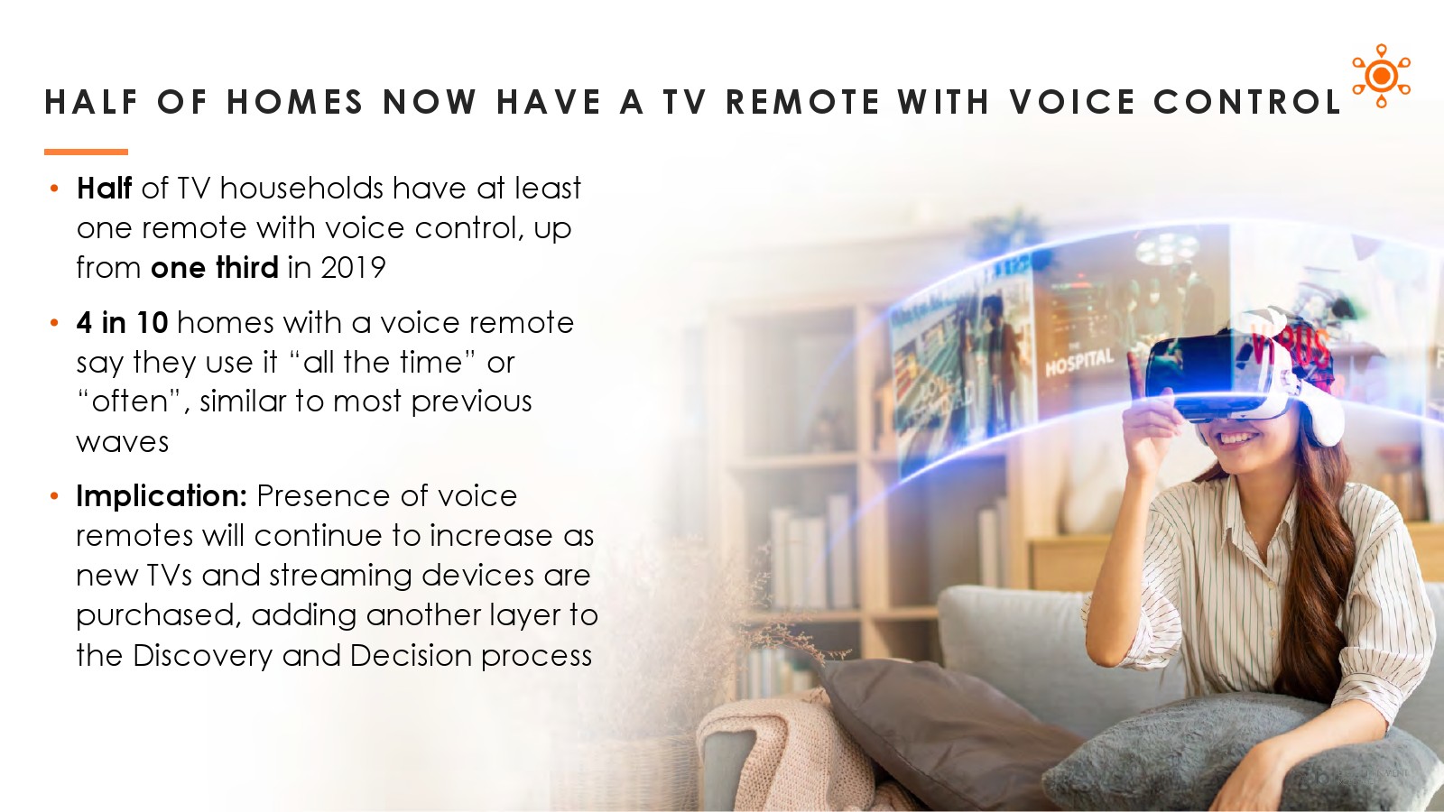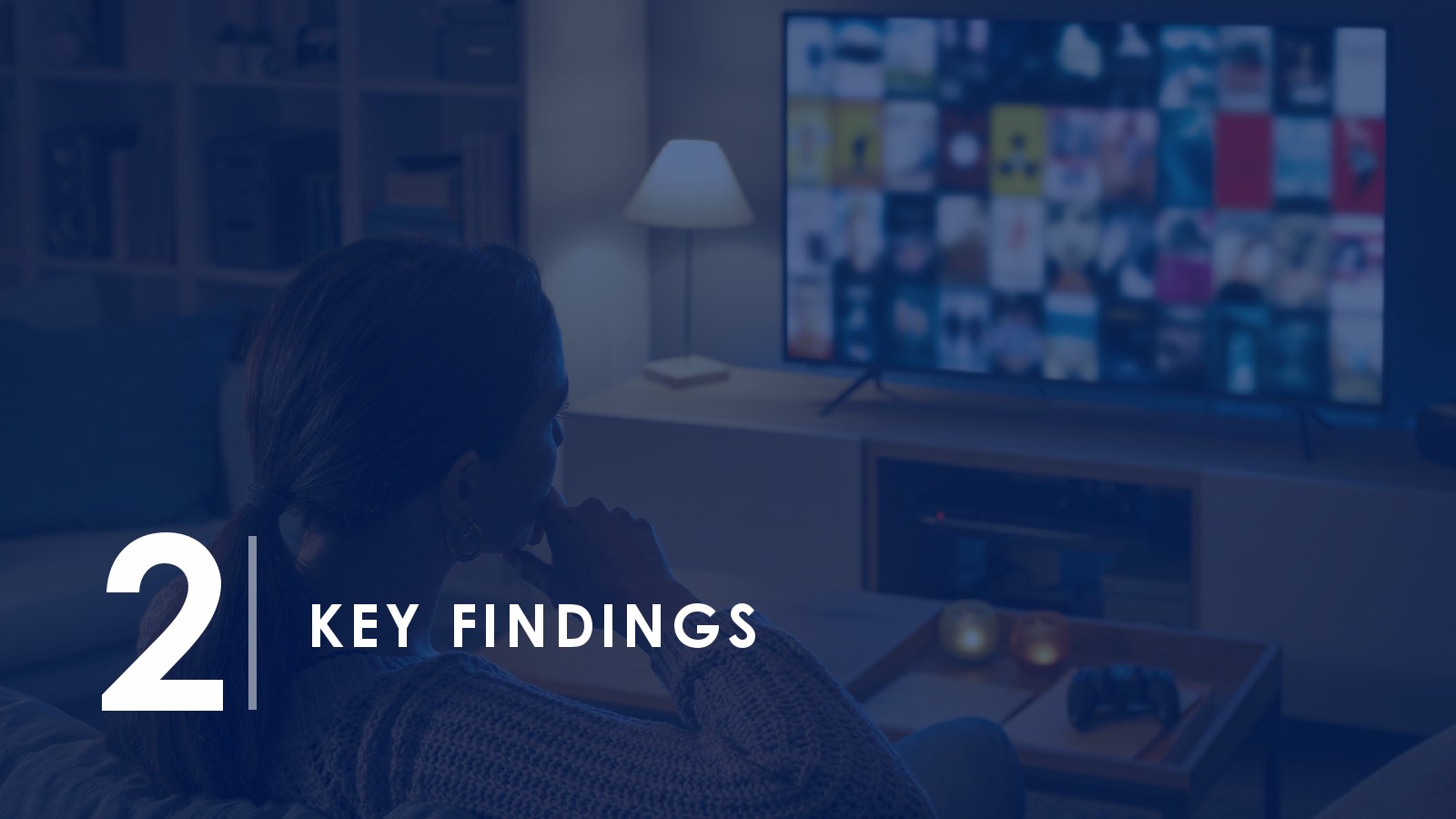 值得注意的是,智能电视的流媒体功能正越来越多地投入使用。近九成的智能电视家庭(88%)定期使用智能电视的内置功能播放流媒体节目,这一数字从2020年的75%稳步增长。此外,每10个电视家庭中就有6个至少每周使用智能电视播放流媒体内容,高于2021年的一半。