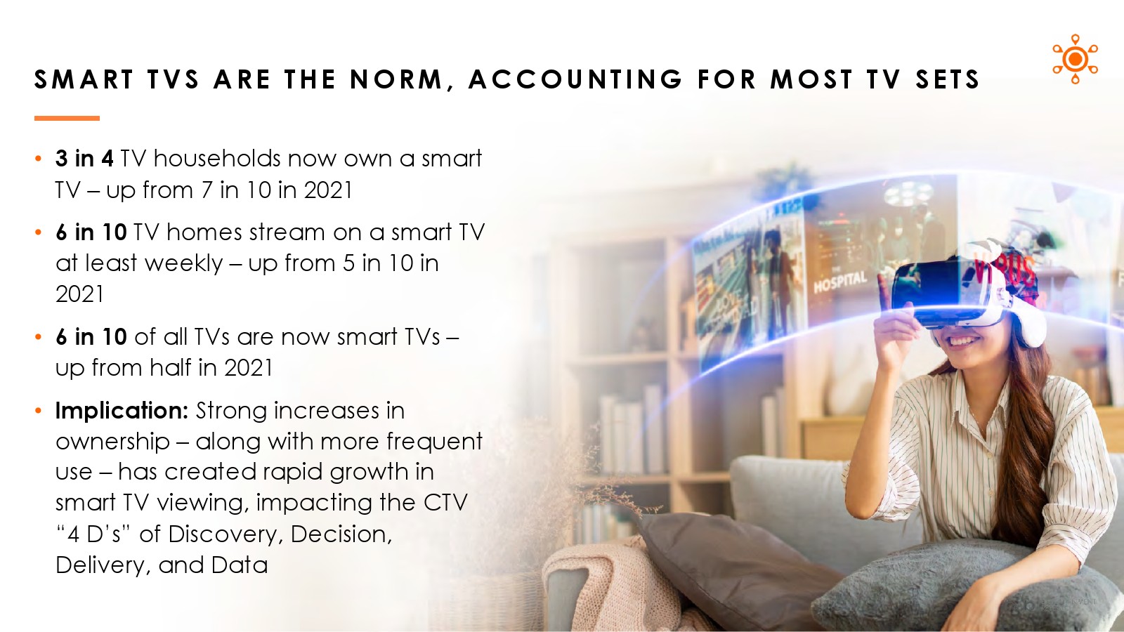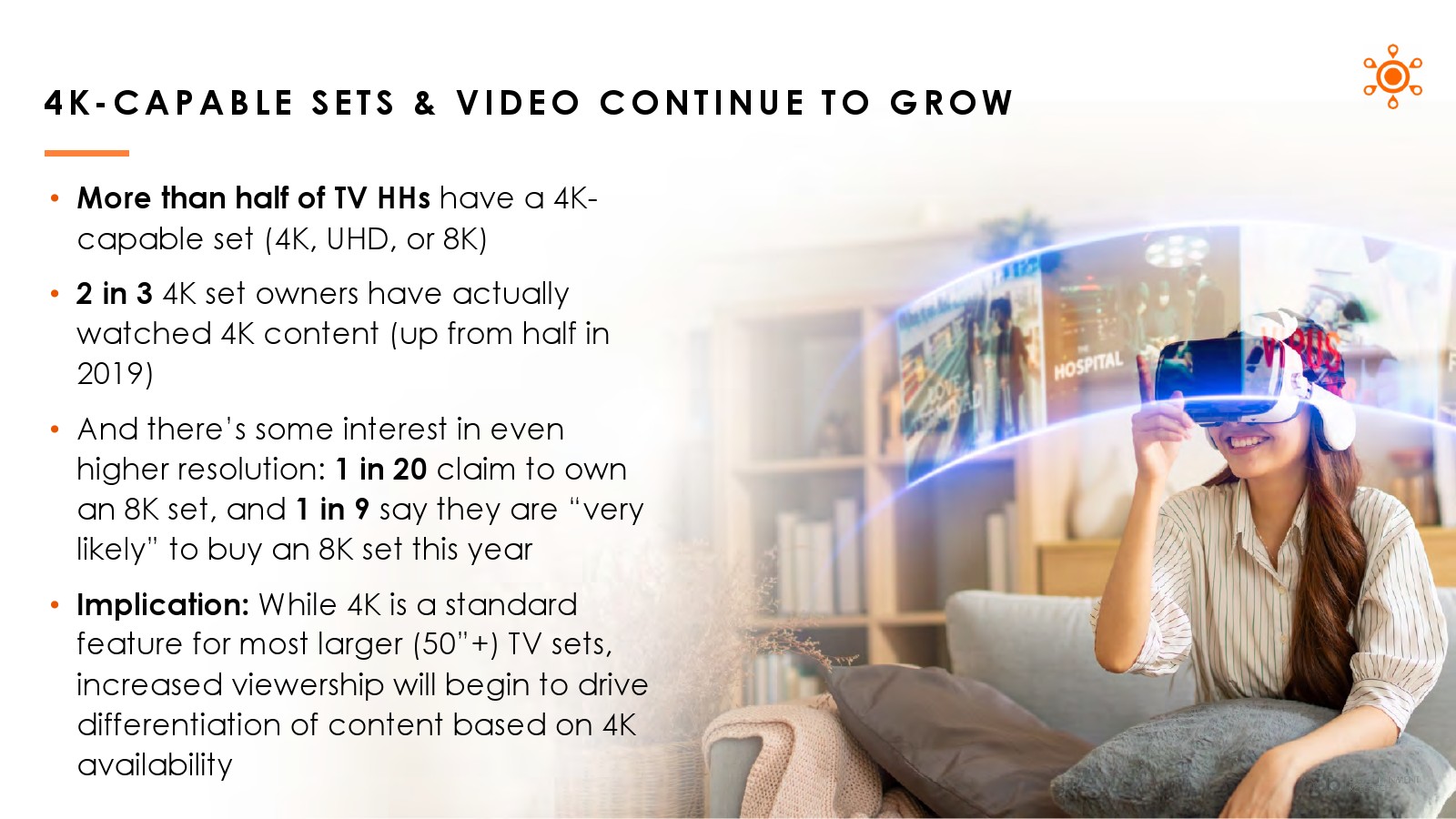 此外,报告称,智能电视的数量也在不断增长。美国人拥有的10台电视机中就有超过6台是智能电视(61%),高于2020年45%的份额。