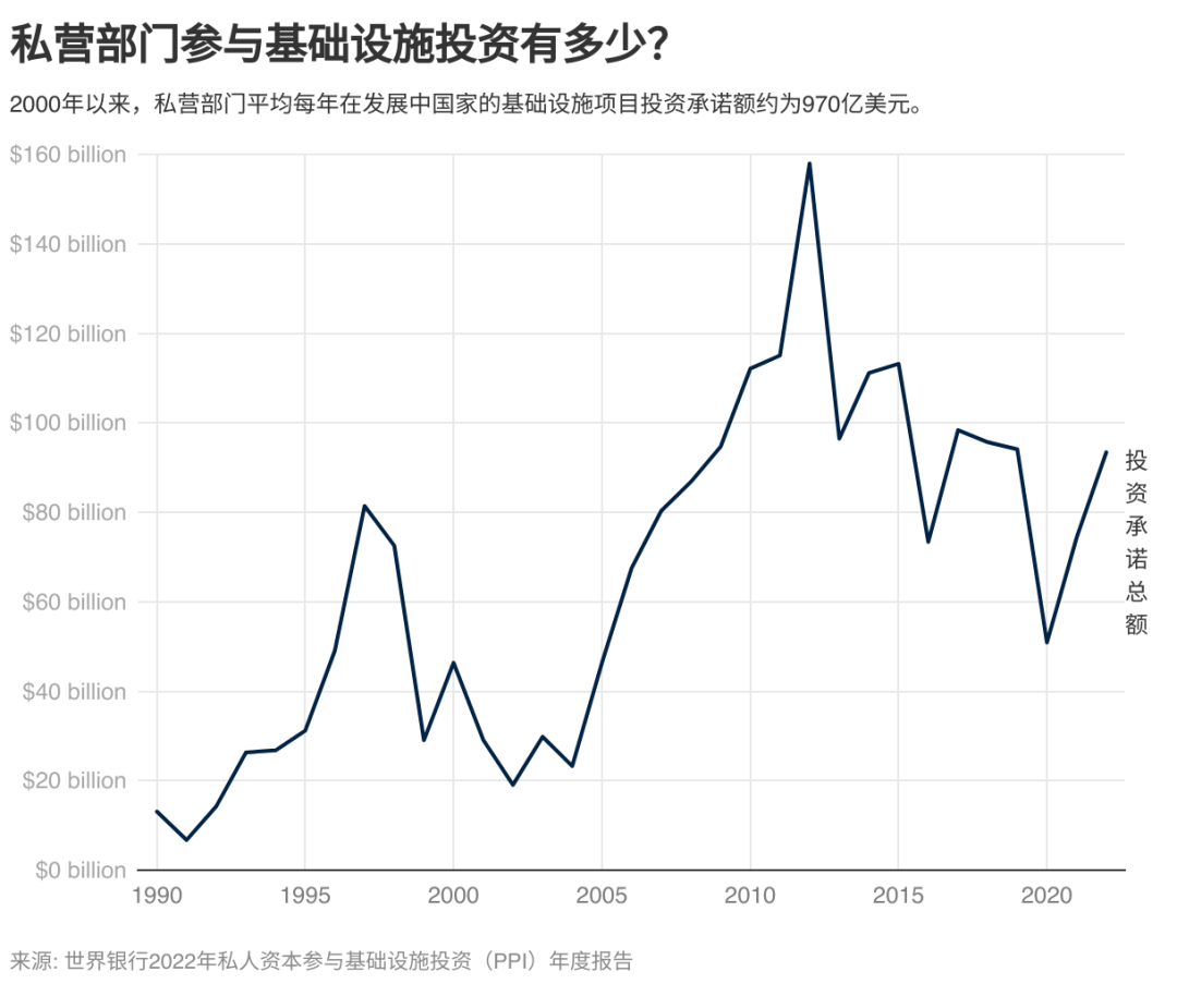 即使在最好的时期,也没有任何实体能够单独承担这笔资金。因此,私营部门参与基础设施投资在过去几十年一直十分普遍。我们的私人资本参与基础设施投资数据库(PPI)已经跟踪投资水平30余年,并持续协助监测发展并寻觅机遇。