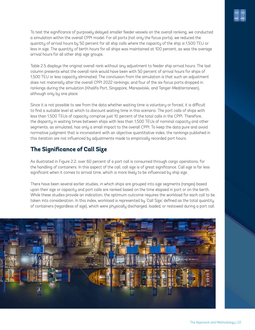 第三版CPPI由世界银行和标普全球市场财智共同编制。它是一个以数据为基础的可比较指数,根据从船舶到达港口到完成货物交换并离开泊位的时间来衡量港口运营效率,对全球348个集装箱港口进行了排名。该排名旨在找出不足和改进机会,从而造福于全球贸易的主要利益相关方,包括政府、航运公司、港口和码头运营商、托运人、物流公司和消费者。